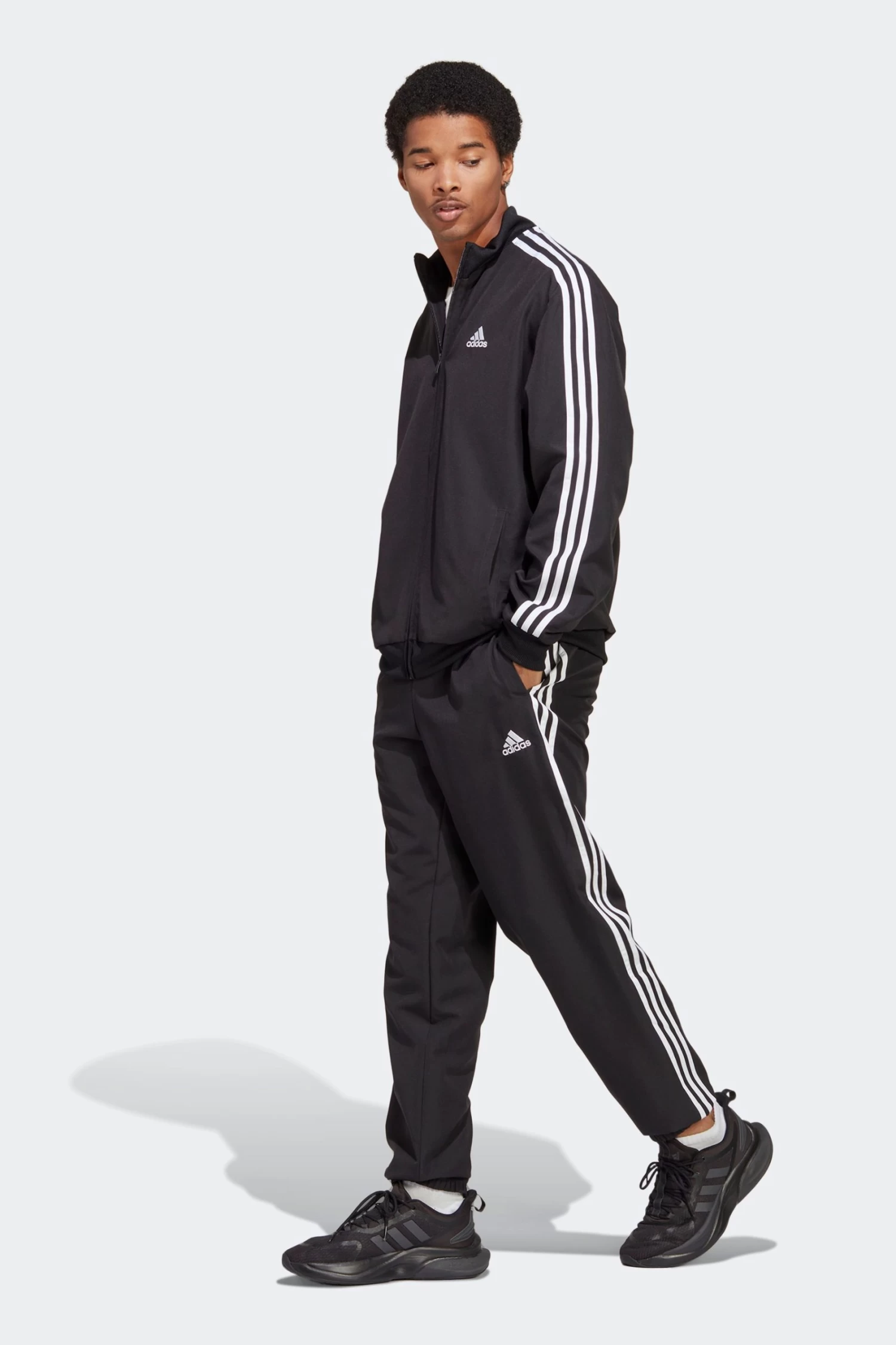 Signature 3-Stripes. Subtle adidas badge of sport. Options come easily with this adidas tracksuit, not just because the hoodie and pants can be worn together or separately, but also because the minimalist build lets you transition through the flow of the day. Signature 3-Stripes stand out on both pieces, complemented by a subtle adidas Badge of Sport.