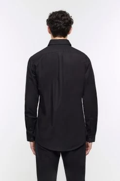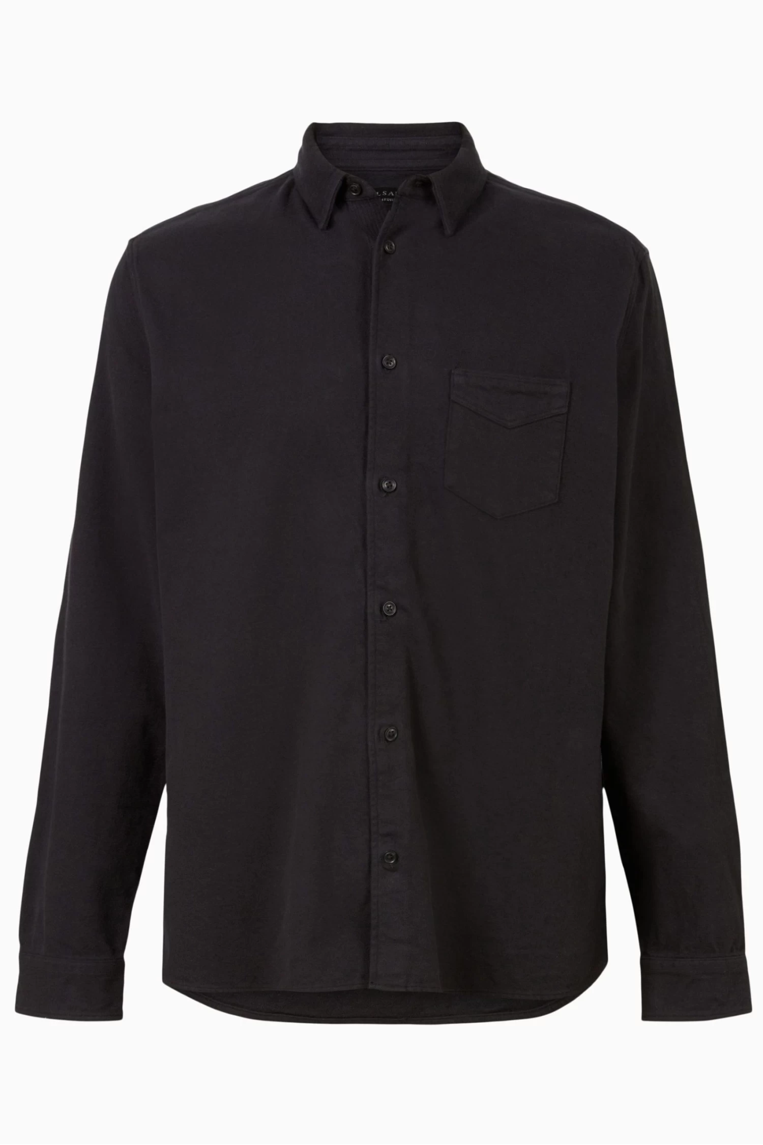 Mid-weight brushed flannel twill with marl effect. Ram skull embroidery branding and concealed button down collar.