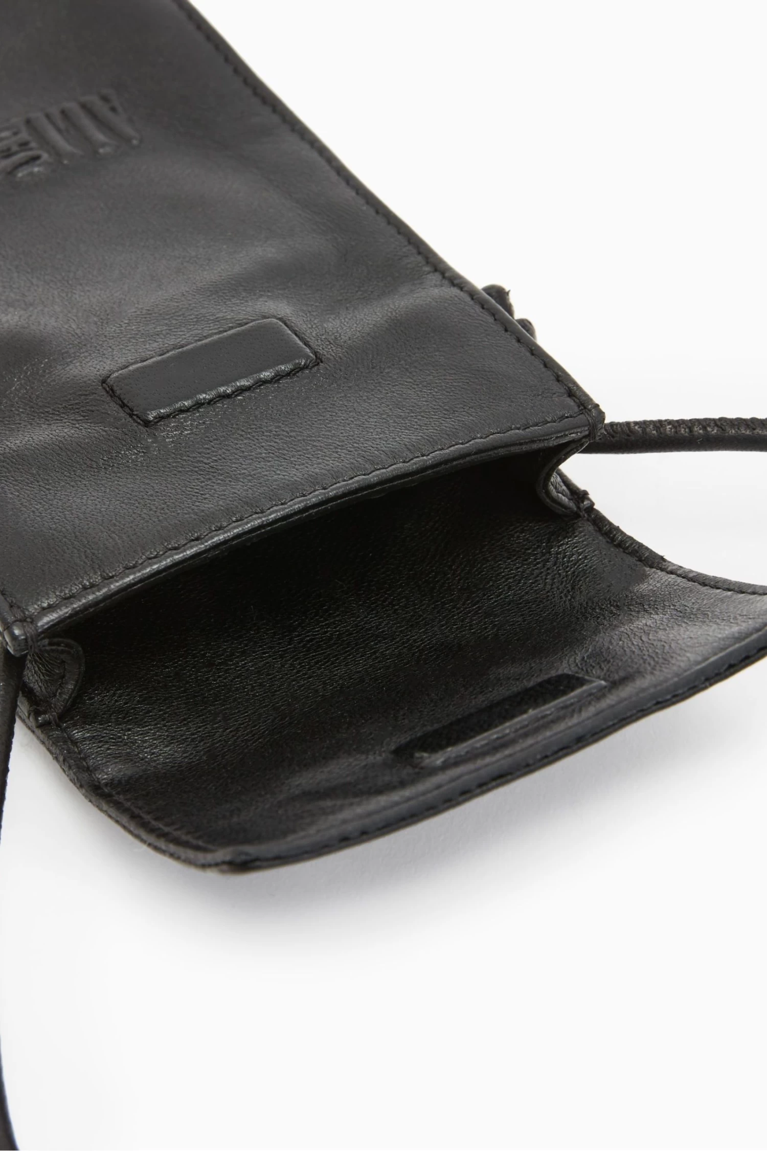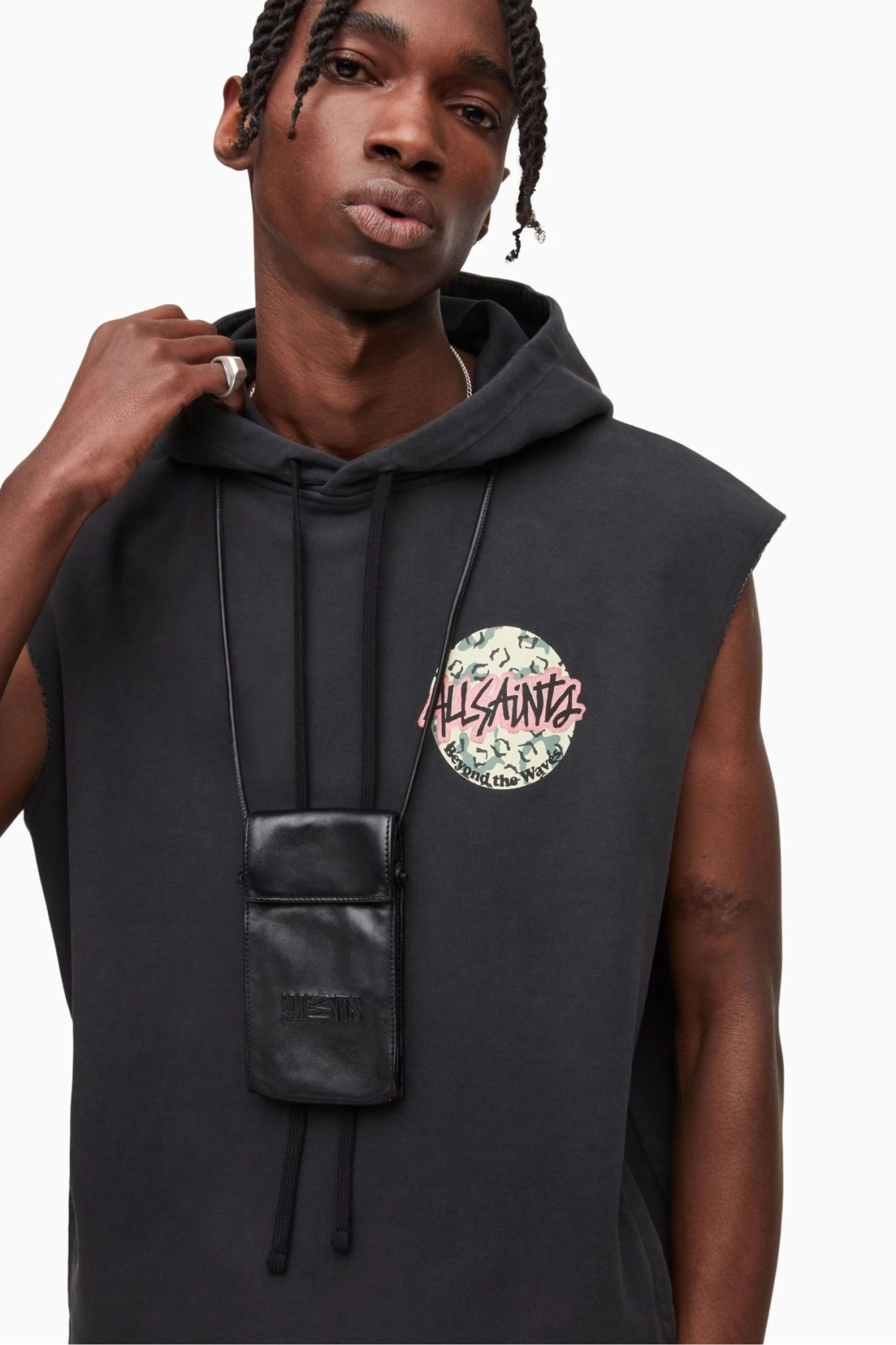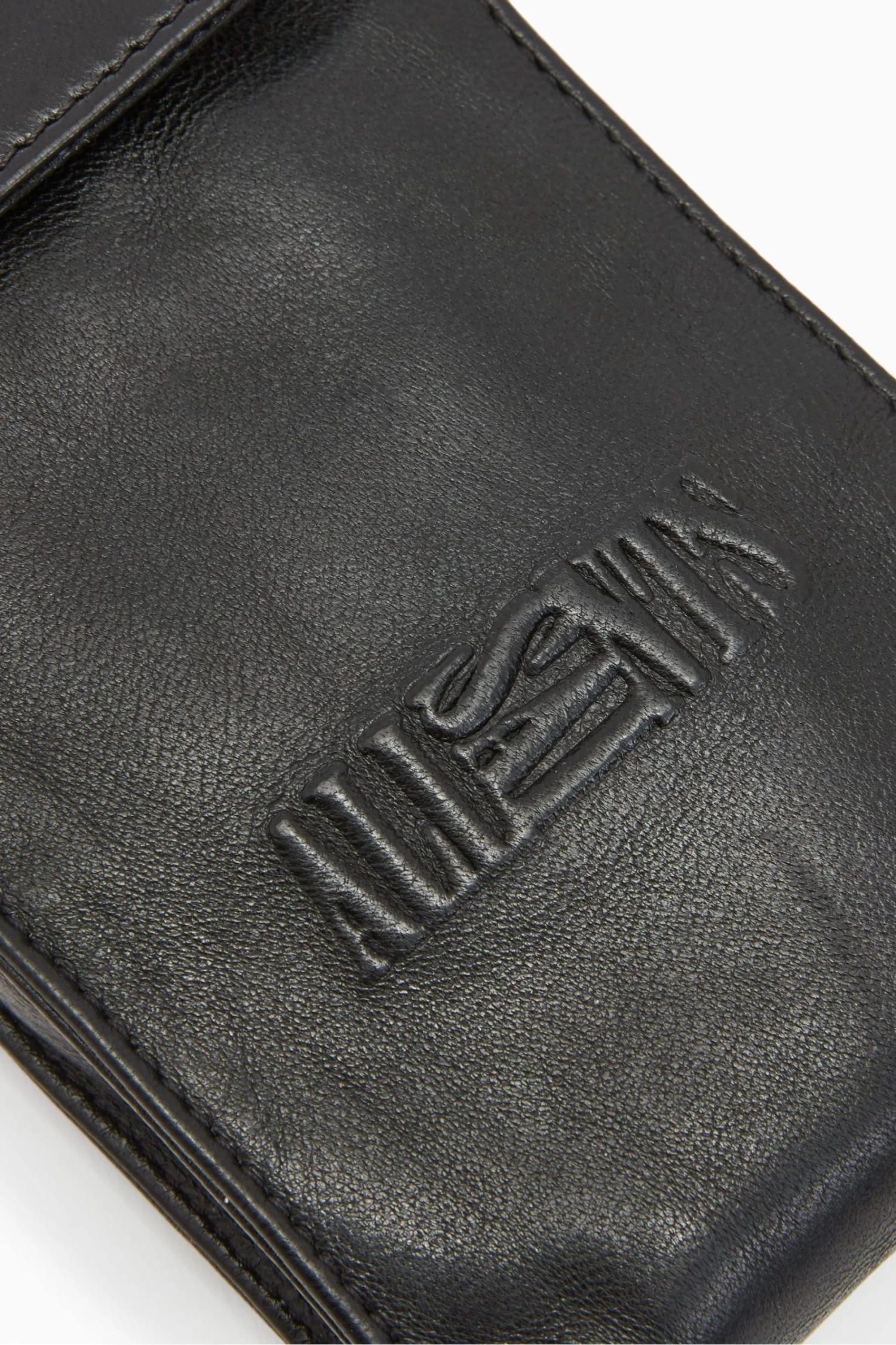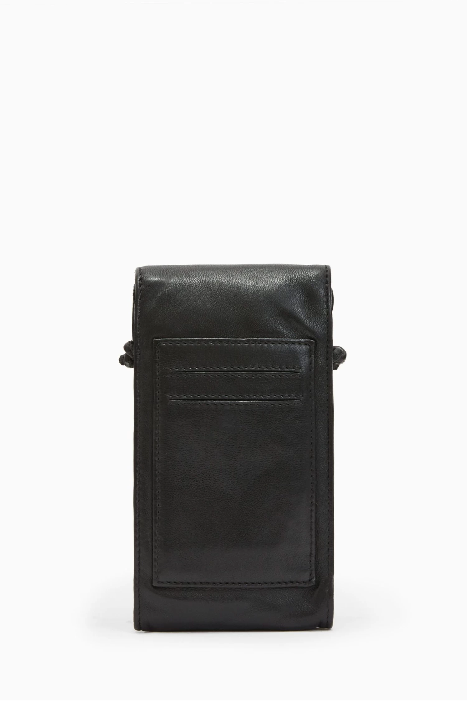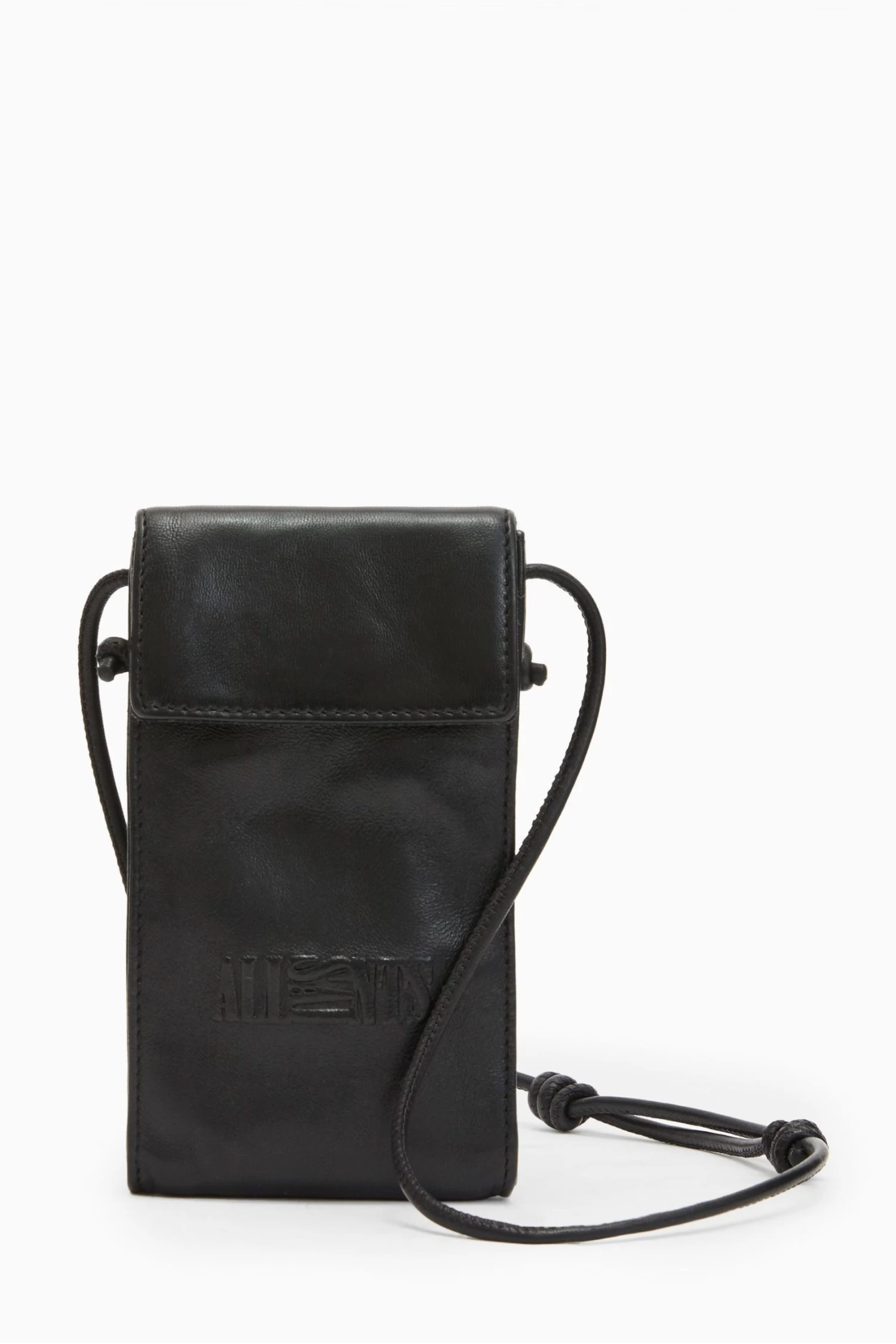 It can store up to two cards. Featuring debossed AllSaints branding. It is made of smooth leather and magnetic closure.