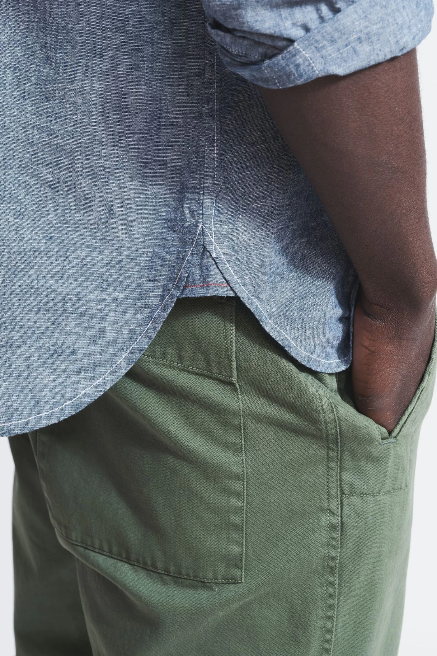 The Dragonby is made using a beautiful cotton/linen blend, its double patch pocket detail is a nod to the workwear details we love so much. This shirt is a great transitional piece that will see you from Spring into summer. Cotton/linen blend. Double patch pocket. Bottom button stitched with Aubin red thread. Available in: Chambray and white stripe. Classic fit.