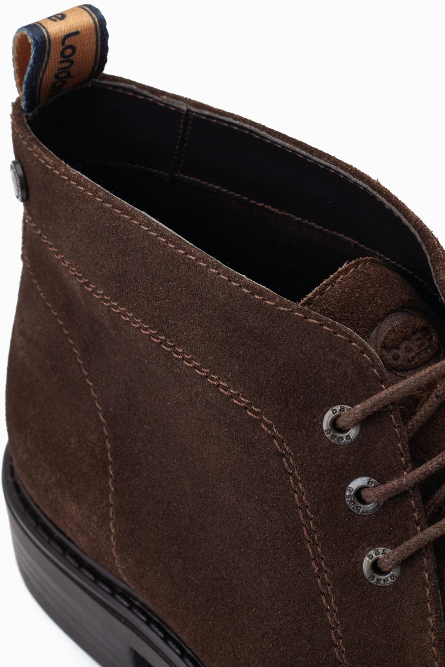 Kilby Suede Brown is the perfect footwear choice for the modern man on the go. This stylish chukka boot features a genuine suede leather upper, 3 lace closures, and a grippy rubber sole. The Ortholite® inner sole provides cushioned comfort all day long, while the nylon pull tab makes it easy to slip on and off. Whether you’re heading to the office or out for a night on the town, Kilby has you covered.