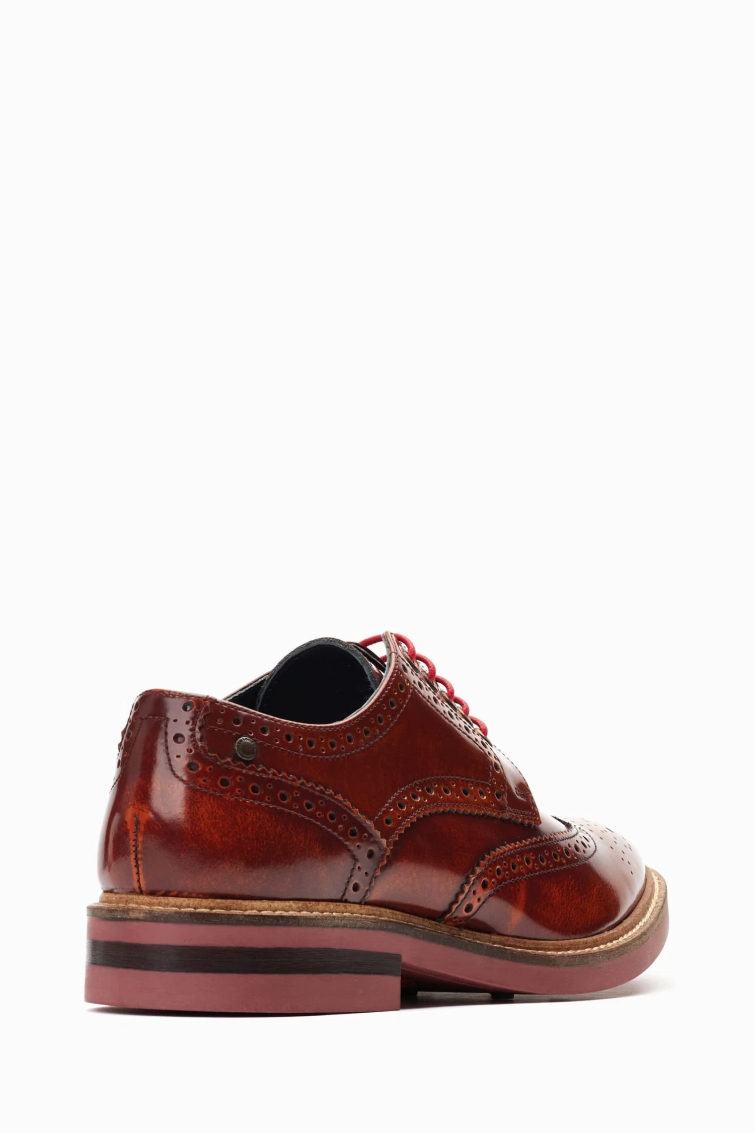 Base London’s fantastic leather men’s fashion formal brogue Woburn has been one of the brands most successful styles of recent seasons. Woburn simply oozes style. A traditional British derby brogue with a contemporary twist Woburn features a decorative toe detail and traditional wing tip toe cap. A quality leather lining provides a luxury edge to this mens’ shoe and the red Base London preppy sock with gold branding adds to the grandeur. Woburn sits proudly on a chunky, studded high fashion rubber sole to provide a comfortable step.