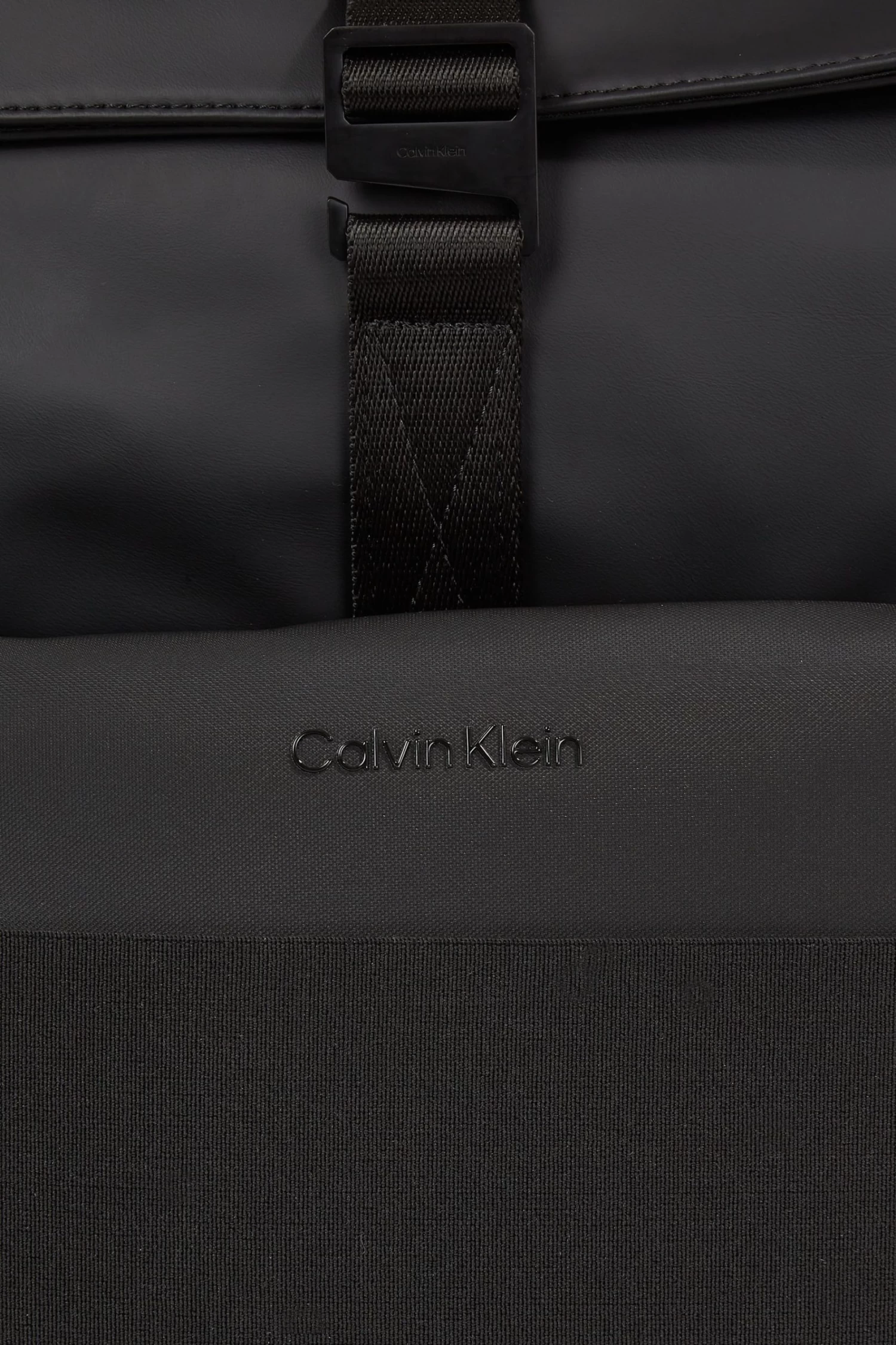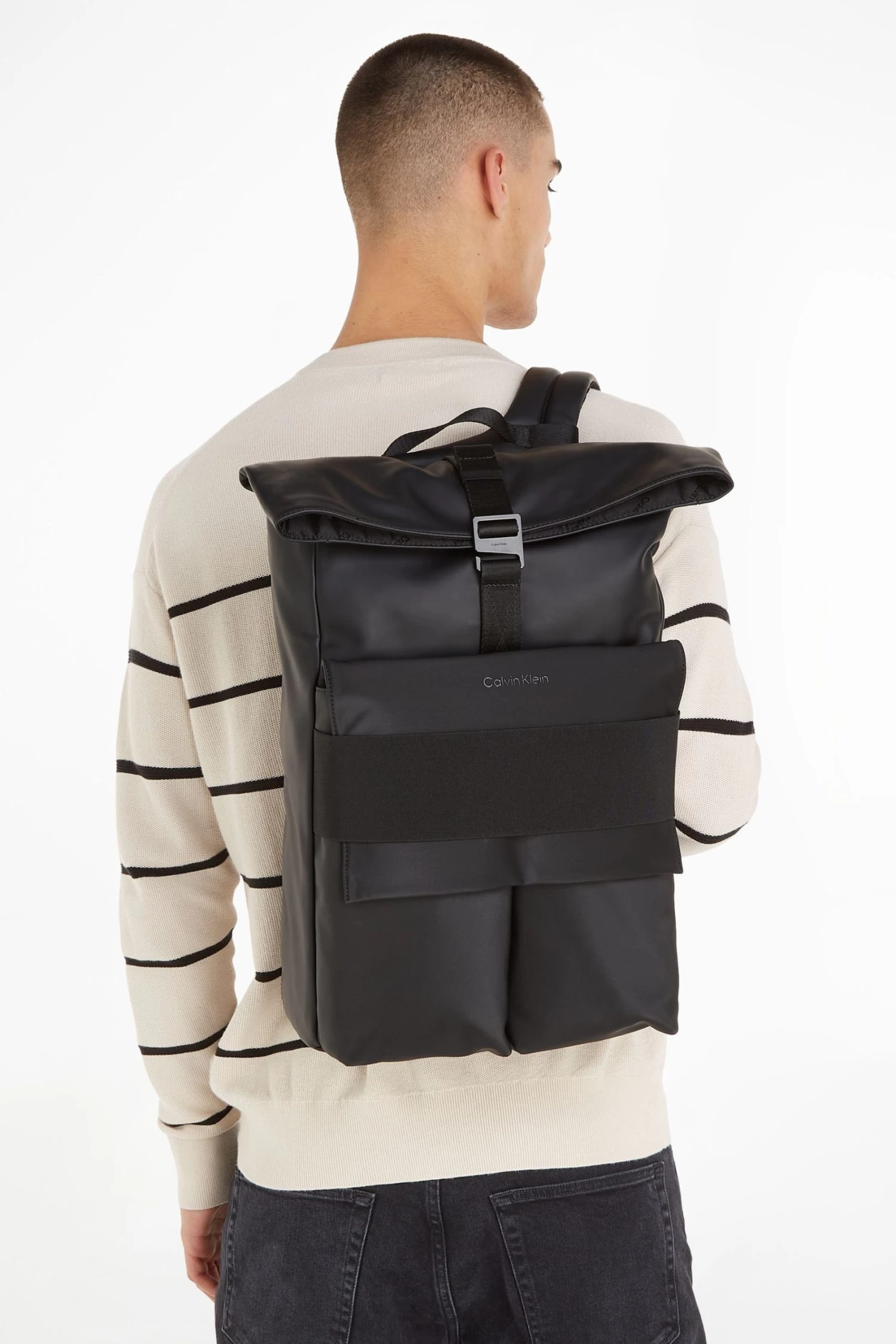 Recycled polyester blend. Roll top and buckle opening. Rucksack design. Calvin Klein signature logo.
