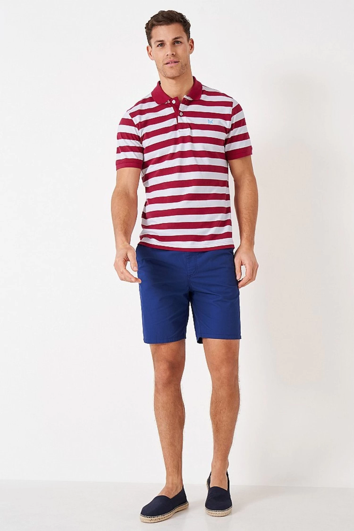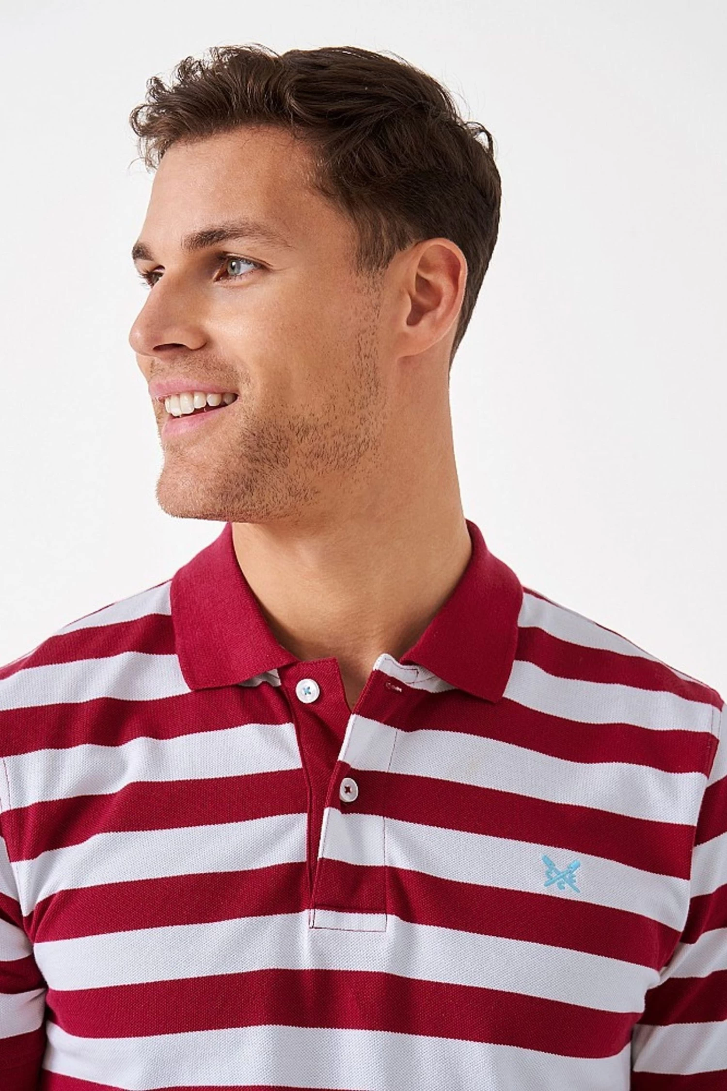 A dark pink and red striped polo. This classic style is cut from 100% cotton and features our contrast crossed oars on the chest, along with hidden embroidery under the collar. Wear with chinos for a smart casual look. A staple as we move into spring. 100% cotton. Classic fit. Branded buttons. Ribbed collar and sleeve. Embroidered Crew branding under the collar. Crossed oars embroidered on the chest. Machine wash at 30 degrees.