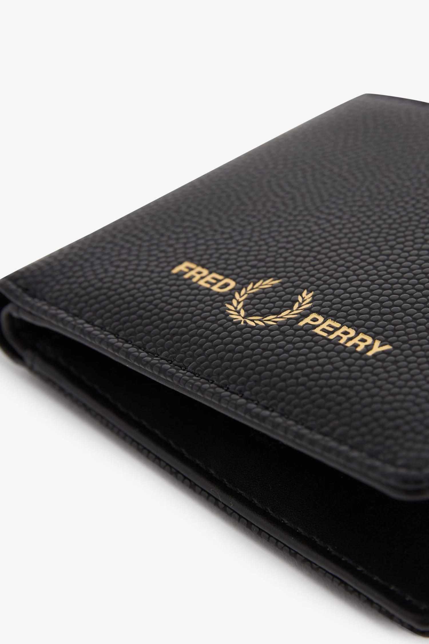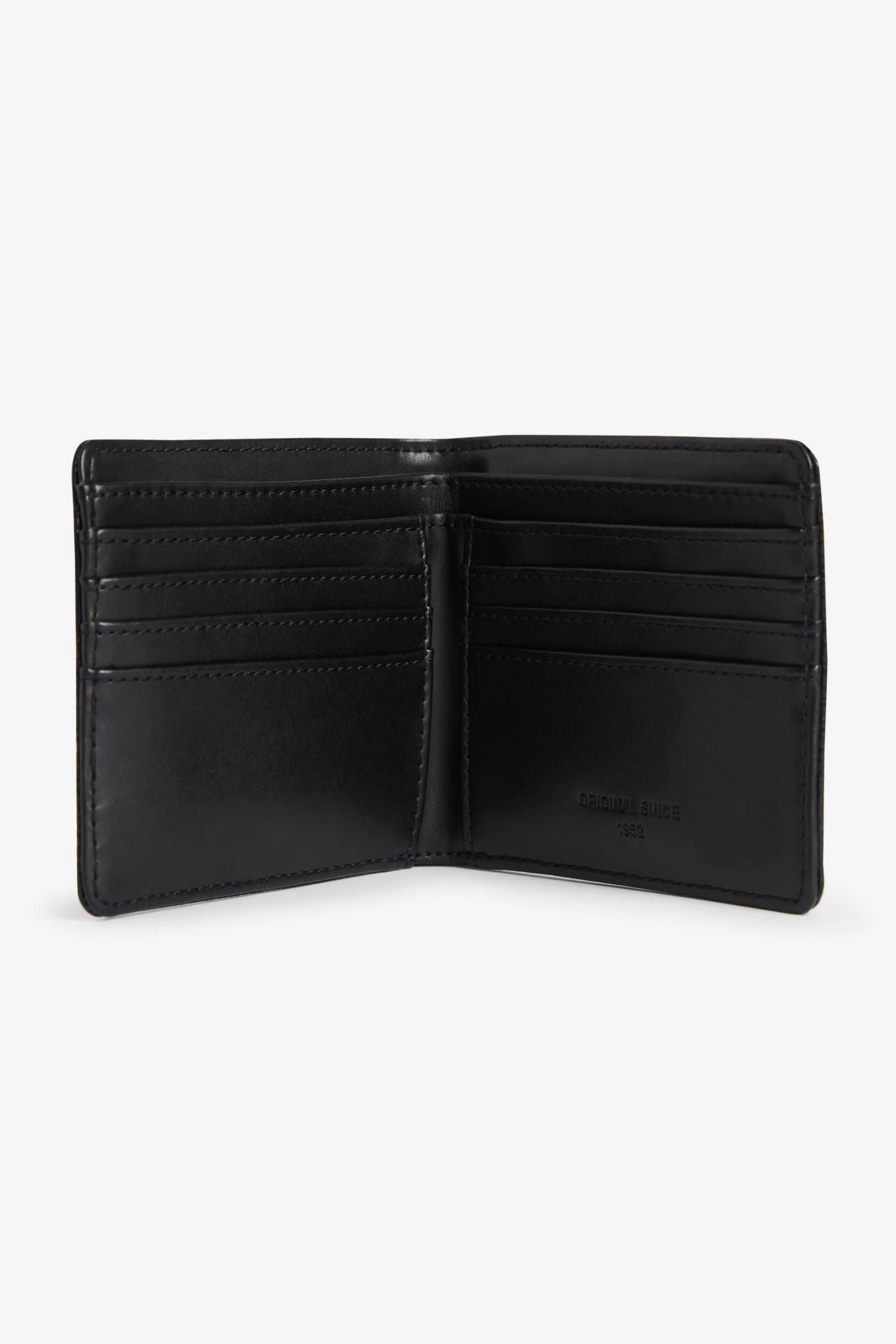A slim design, billfold wallet has space for your notes and cards and comes with a textured Scotch grain finish and signature Fred Perry detailing.