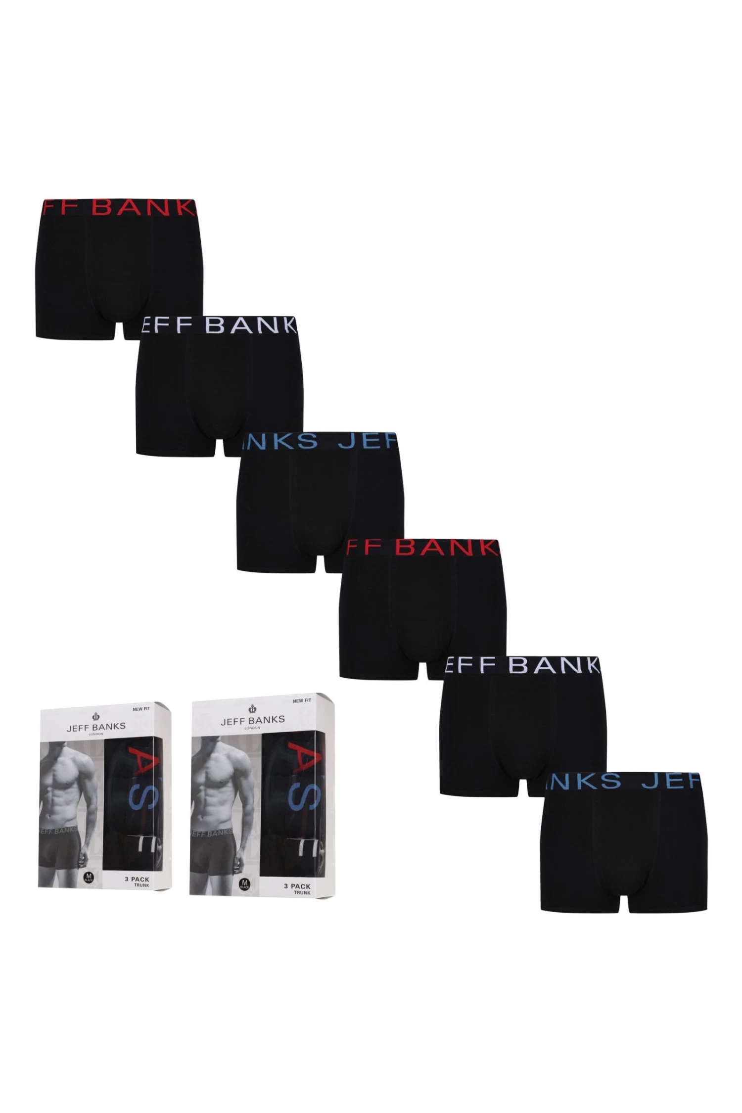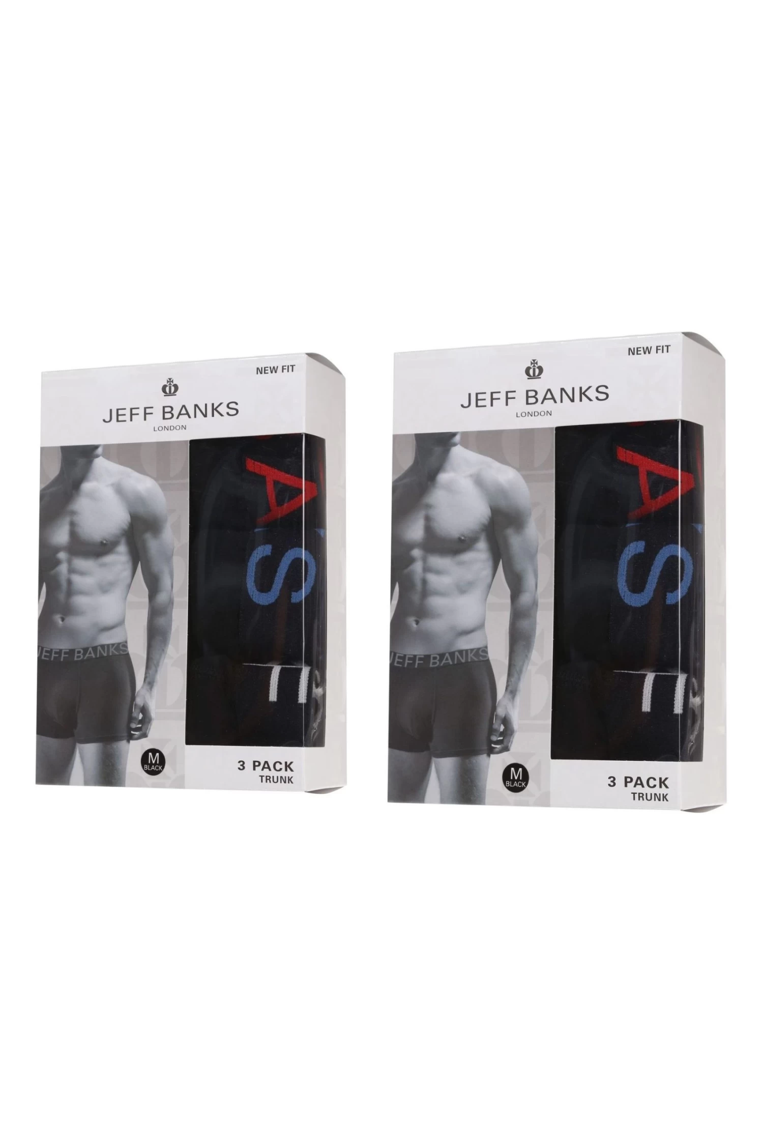 A 2x 3 pack of men s cotton rich underwear from one of British fashion s most well-known designer names, these Jeff Banks Boxer trunks are soft, combed cotton rich stretch jersey with a 5cm inseam. They have a comfortable and supportive seam-shaped pouch, flat lay seams on the body of the garment for less irritation. The waistbands of these pairs of plain boxer trunks feature a fresh version of the Jeff Banks brand name, supersized around the waist in big block letters and come with a mix of colours across the set. comes as a 2x 3 pack.