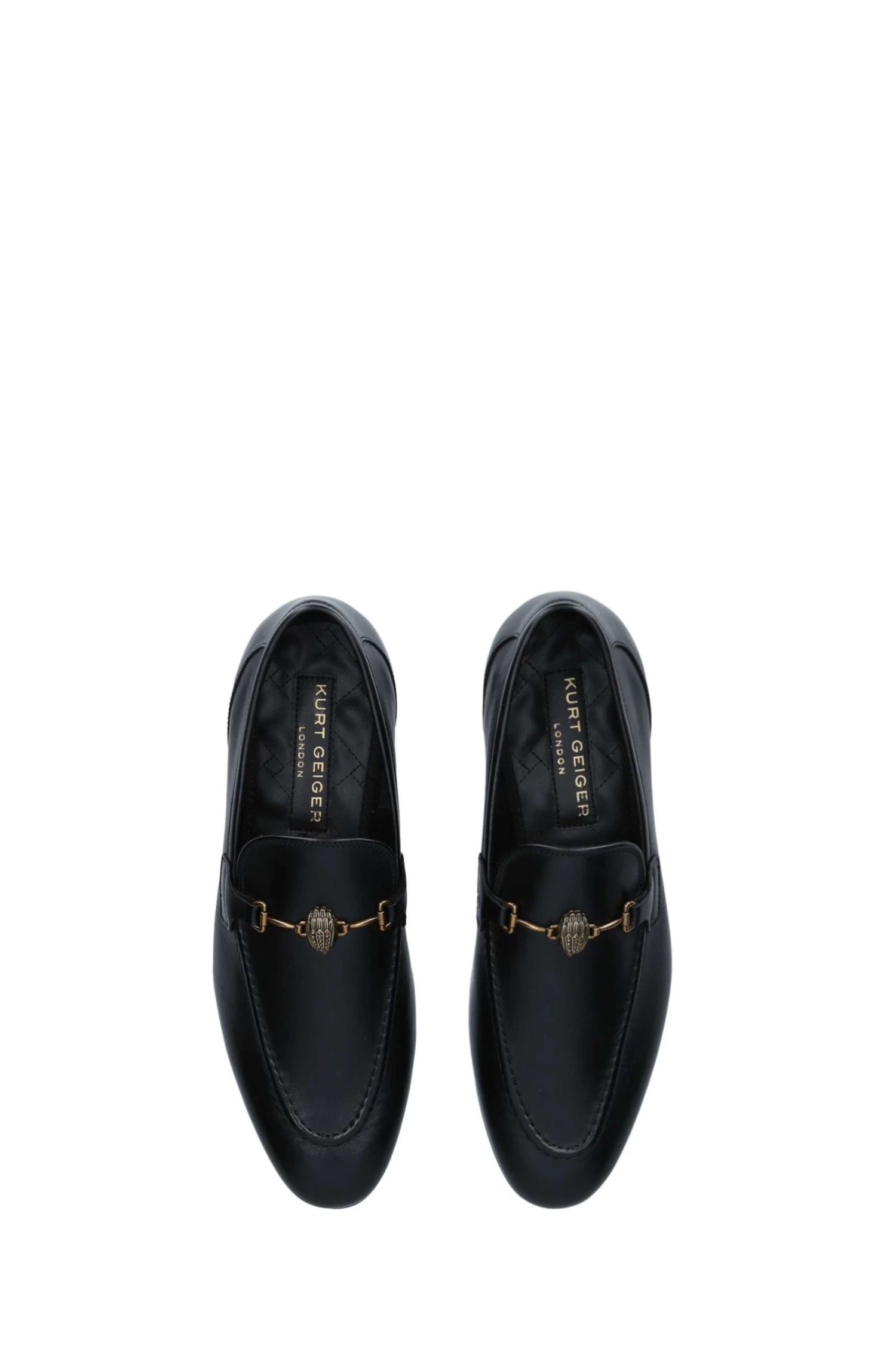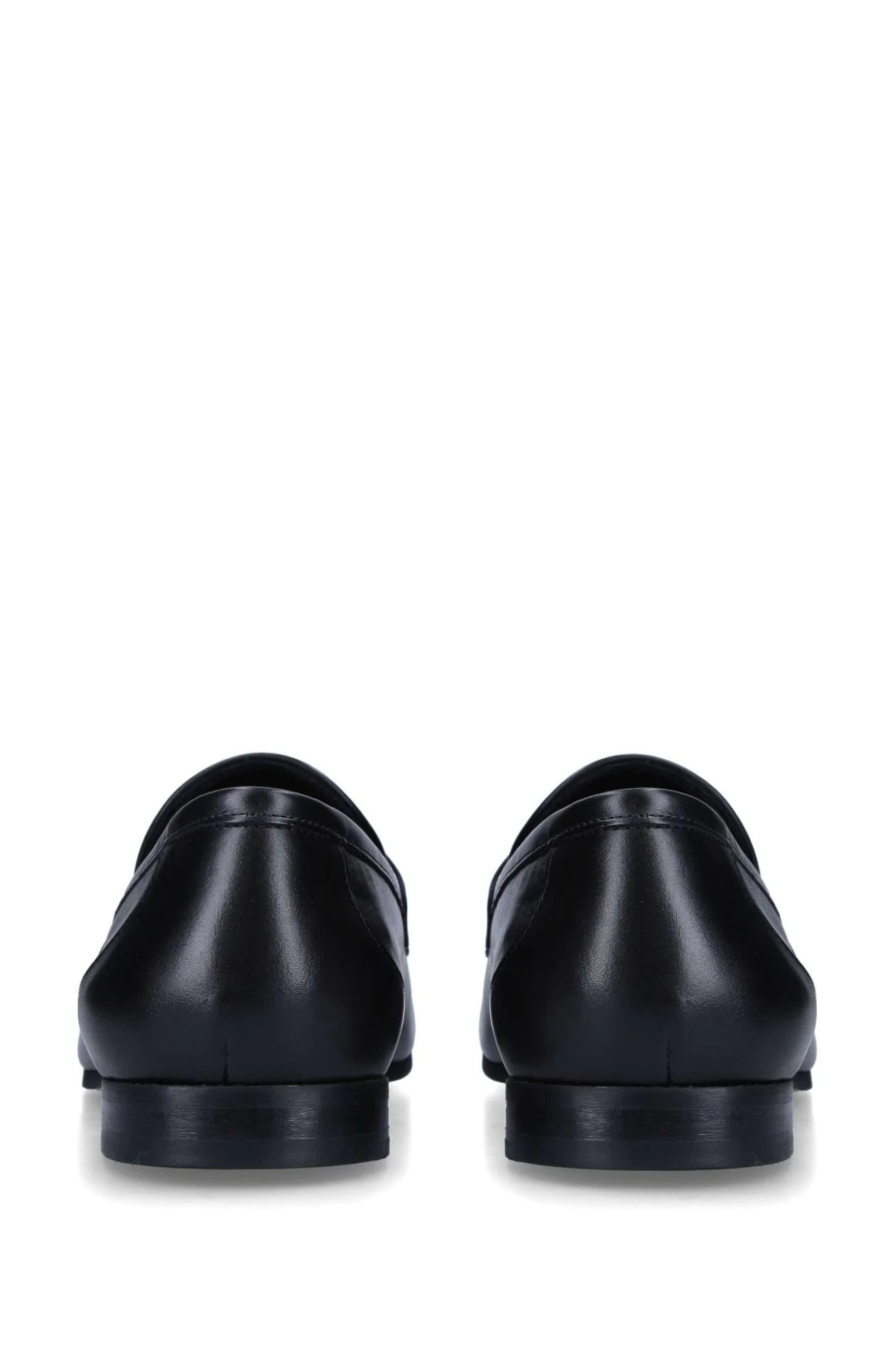 The Ali loafers feature a black upper and classically rounded toe. The elongated vamp is adorned with black chain, all sat on a black sole with low-block heel.