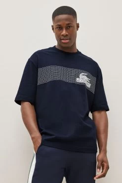 This new T-shirt, inspired by vintage Lacoste pieces, is sure to become a classic. Made for everyday style. Choose 1 size smaller than your usual size for a more fitted style. Loose, oversized fit with dropped shoulders: Turn up the volume. Easy and comfortable. Tennis net print, embroidered crocodile: The Lacoste signature.Green crocodile on back: Live the legend. Organic cotton: Grown without GMO or chemical products. Cotton (100%).