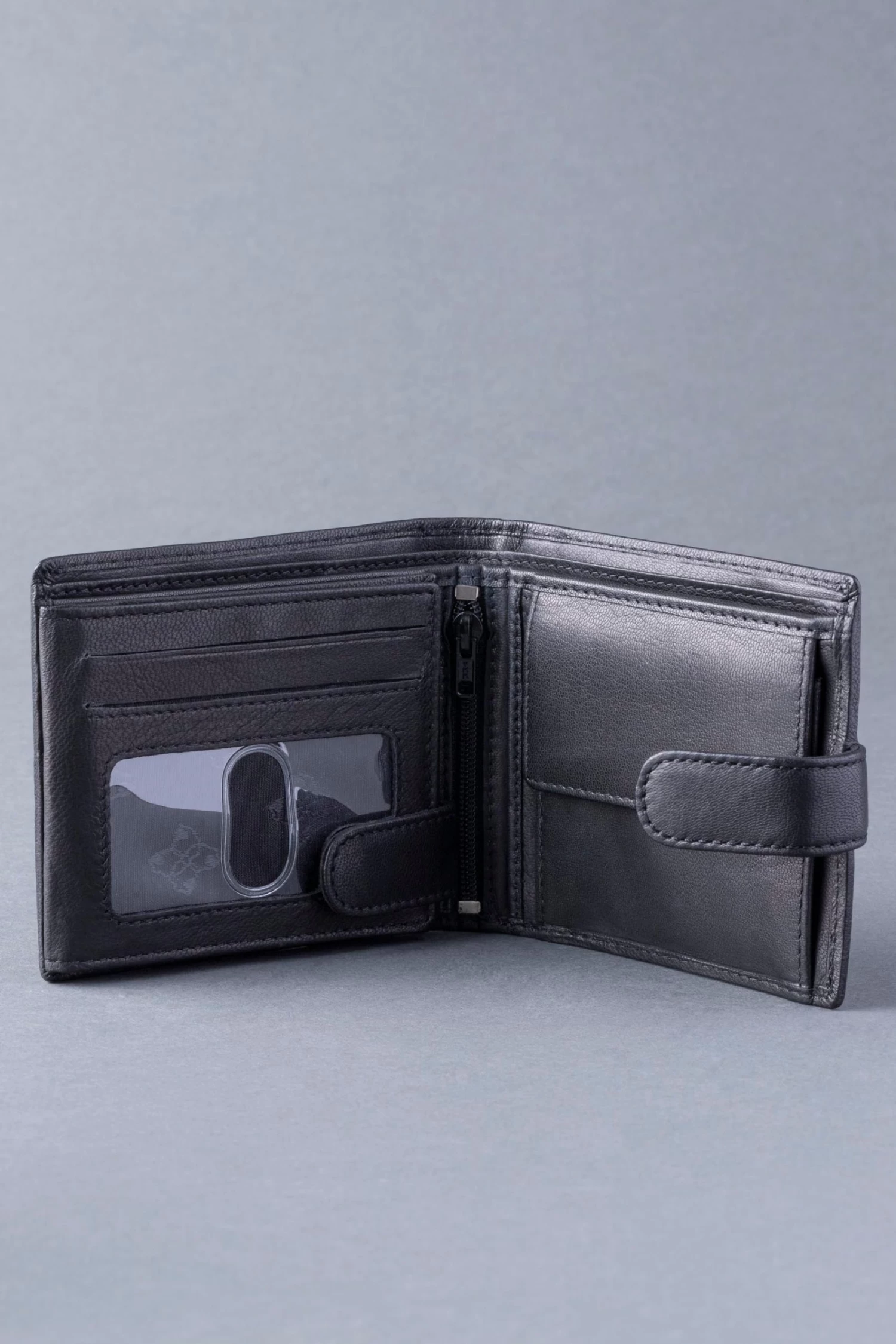 The Classic Burneside Leather Billfold Wallet is handmade from the finest smooth black leather. Sophisticated, elegant and chic, this wallet features a selection of storage space such as a coin pocket with popper fastening as well as a small zipped compartment.