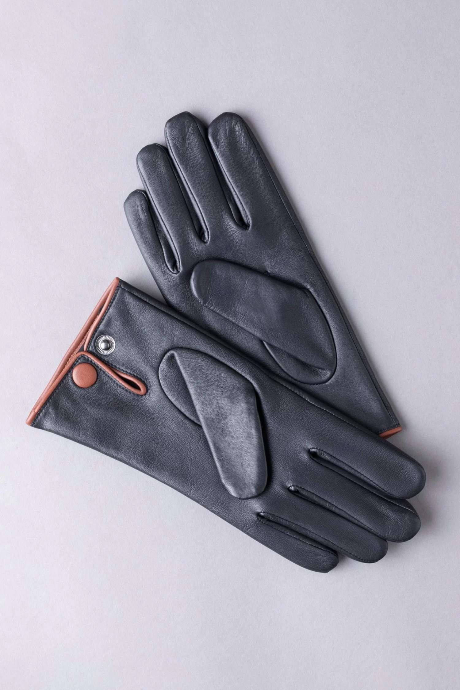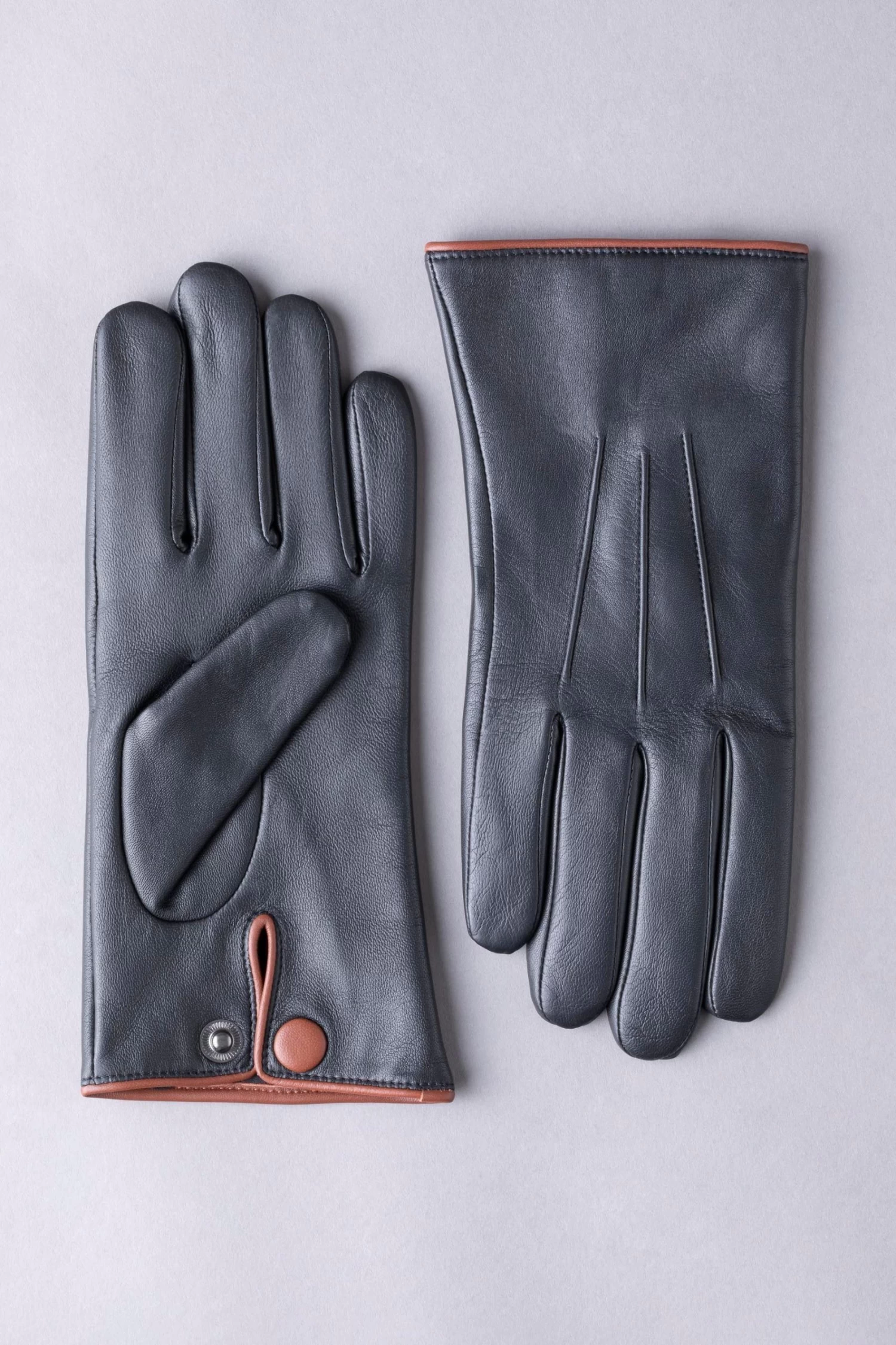 Crafted from soft yet durable semi-aniline leather, these Swinside leather gloves are cosy and luxurious. With a fleece lining for extra warmth, these gloves are complete with contrast leather piping at the wrist and a press stud button for a secure and comfortable fit.