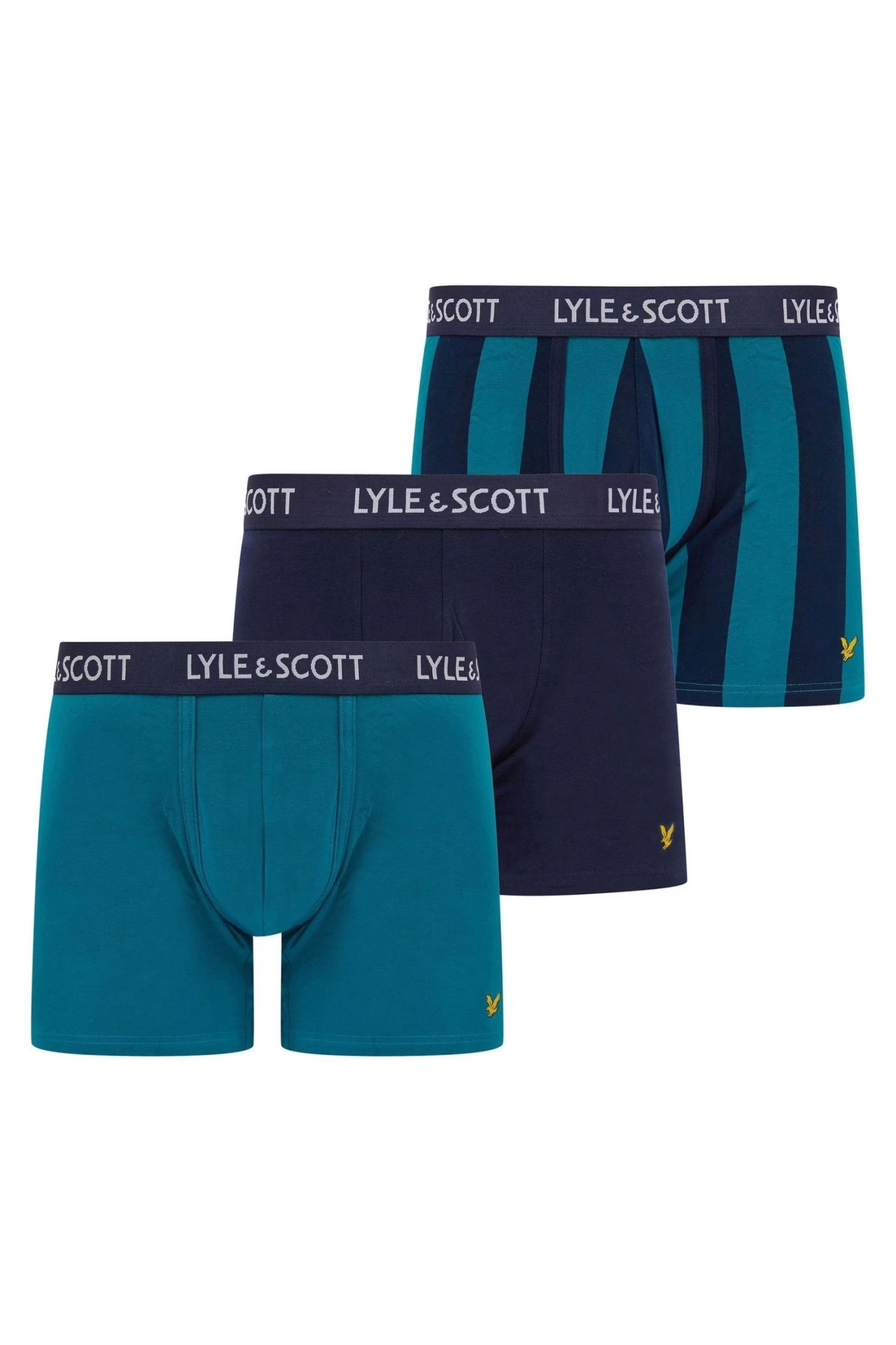 Lyle and Scott three-pack Elias men’s cotton stretch underwear trunks. Complete with premium branded elastic waistband. Finished with classic eagle branding. Perfect for any occasion or gifting.