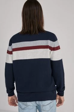 Ted Baker Grey Abulti Long Sleeve Regular Striped Crew Neck Jumper