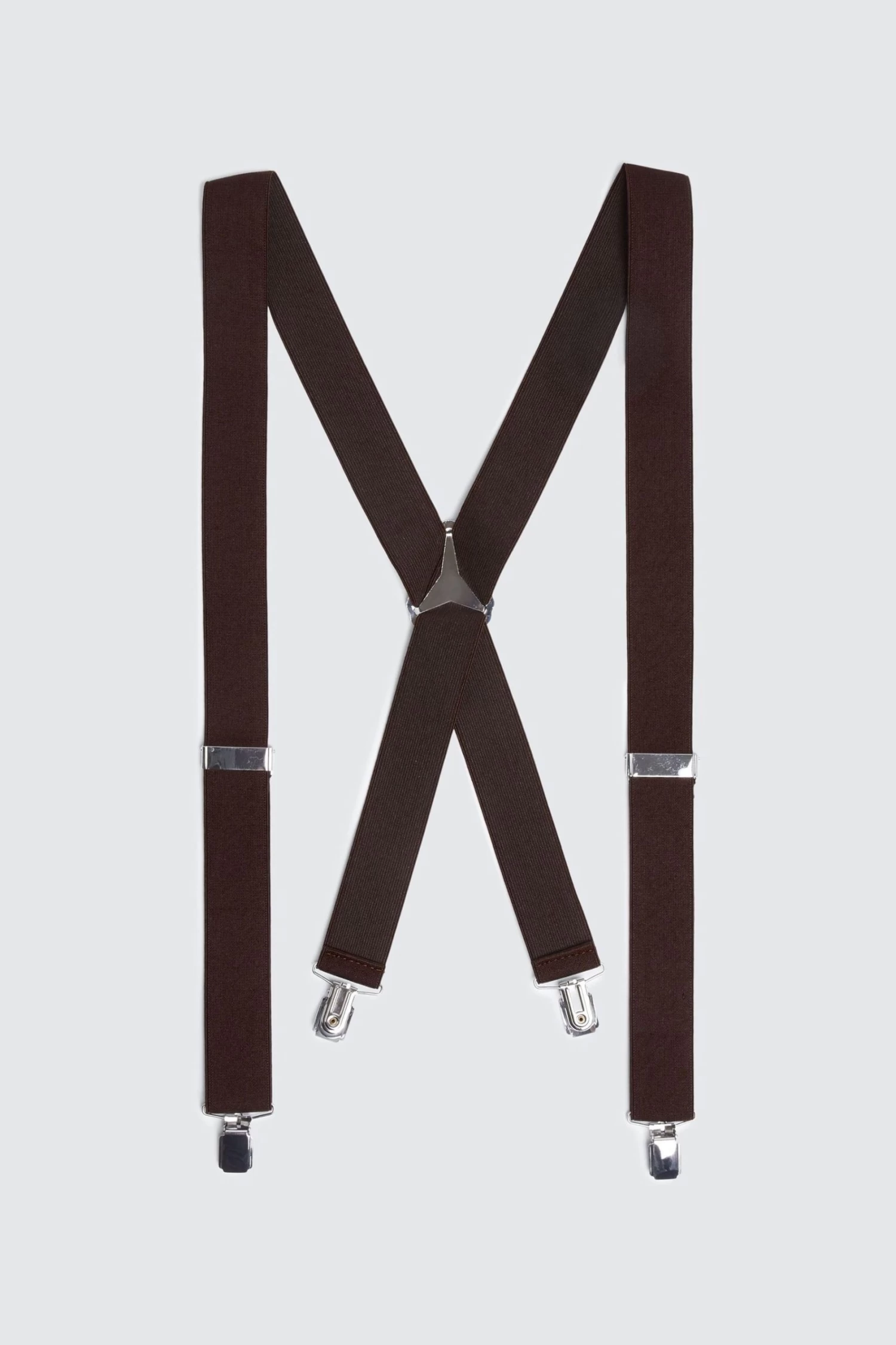 Crafted in chocolate elastic with polished clips, Moss adjustable braces are the best way to quite literally pull your look together. Just be sure to coordinate the colour of your shoes and tie.