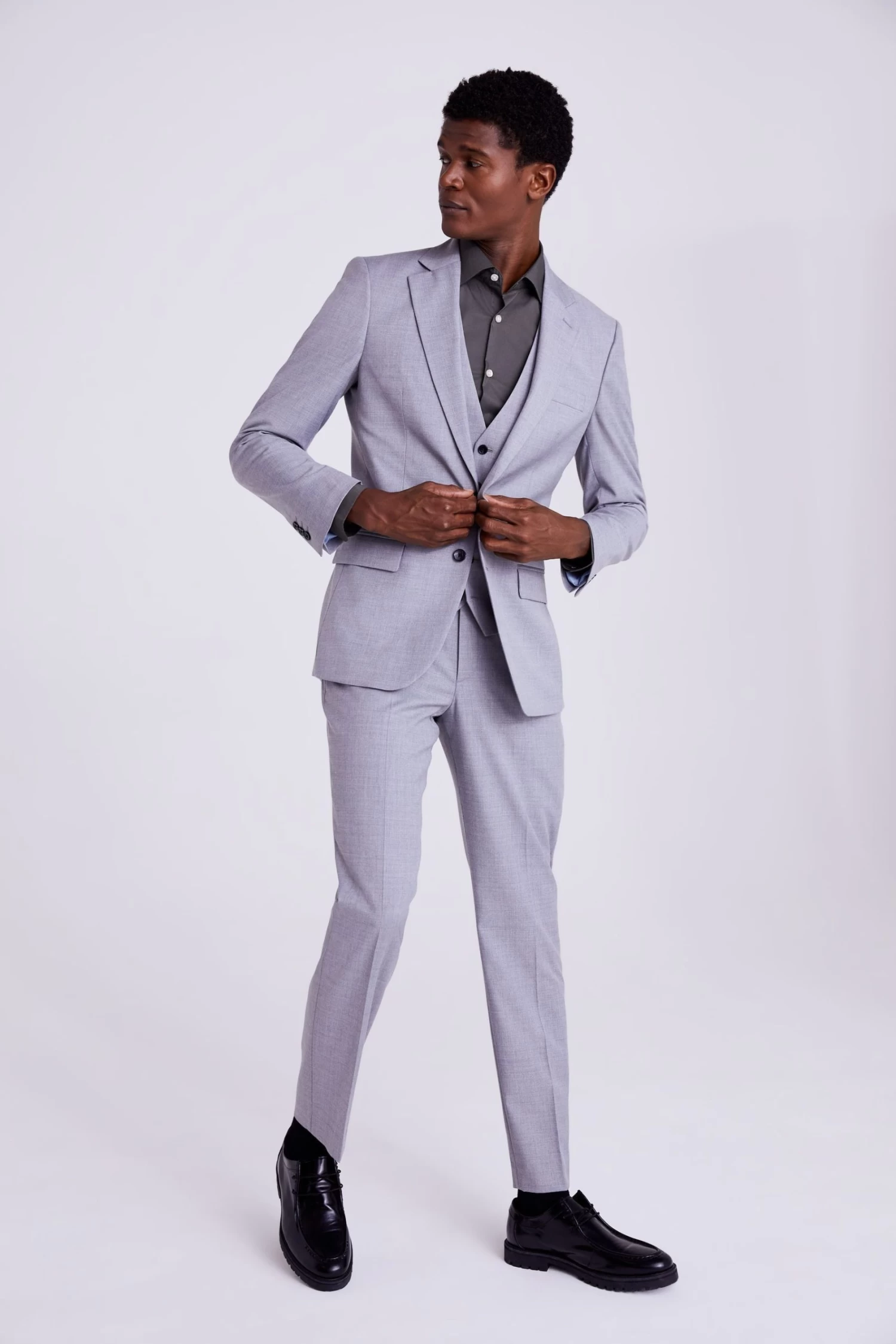 When you’re up against a hectic schedule, stretch cloths are an investment you’ll be very glad you made. Moss 1851’s three-piece suit contains generous elastane, so its clean tailored fit will deliver strong lines that’ll move with you. Pair the grey tone with fresh white and deep navy for modern contrast.