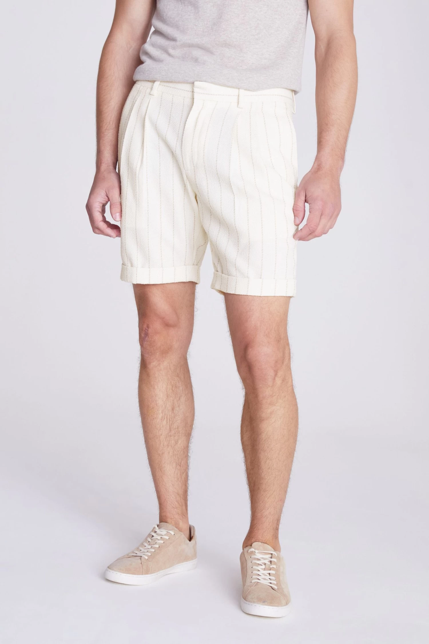 Crafted in stretch-cotton fabric that’s a breathable winner when the hot weather comes in, Moss ecru shorts are a versatile pair to add to your summer holiday collection. They’re patterned with a tonal stripe, and detailed with front pleats and turnups for a dialled-up look that’ll work into the evening.