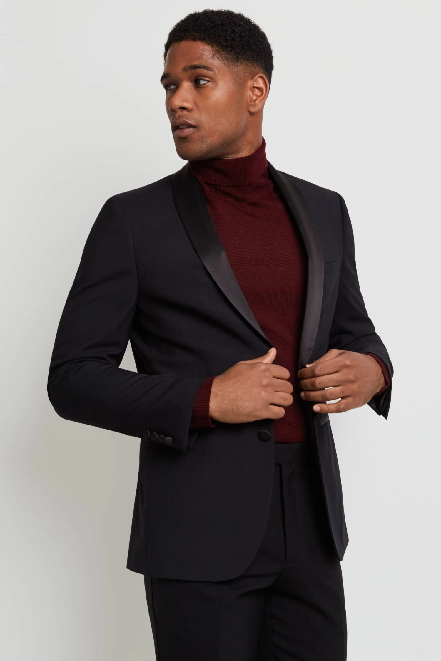 Looking sharp has never been so easy. When it comes to sophisticated events this summer, you need to dress to impress. Turn to this MOSS 1851 tailored jacket that sits against your frame for a neat outline. It also features black shawl lapels for added elegance so you can be sure to stand out on the night. For a classic black-tie look with an edge, swap your shirt for a wine-coloured roll neck and pair both with tailored black trousers.
