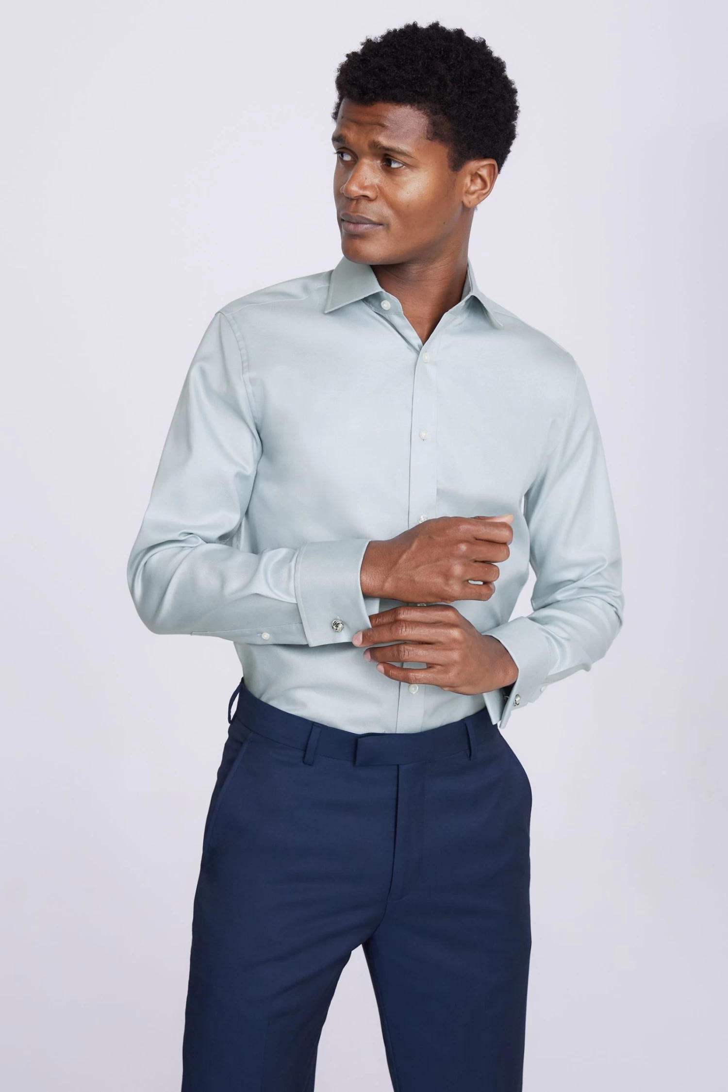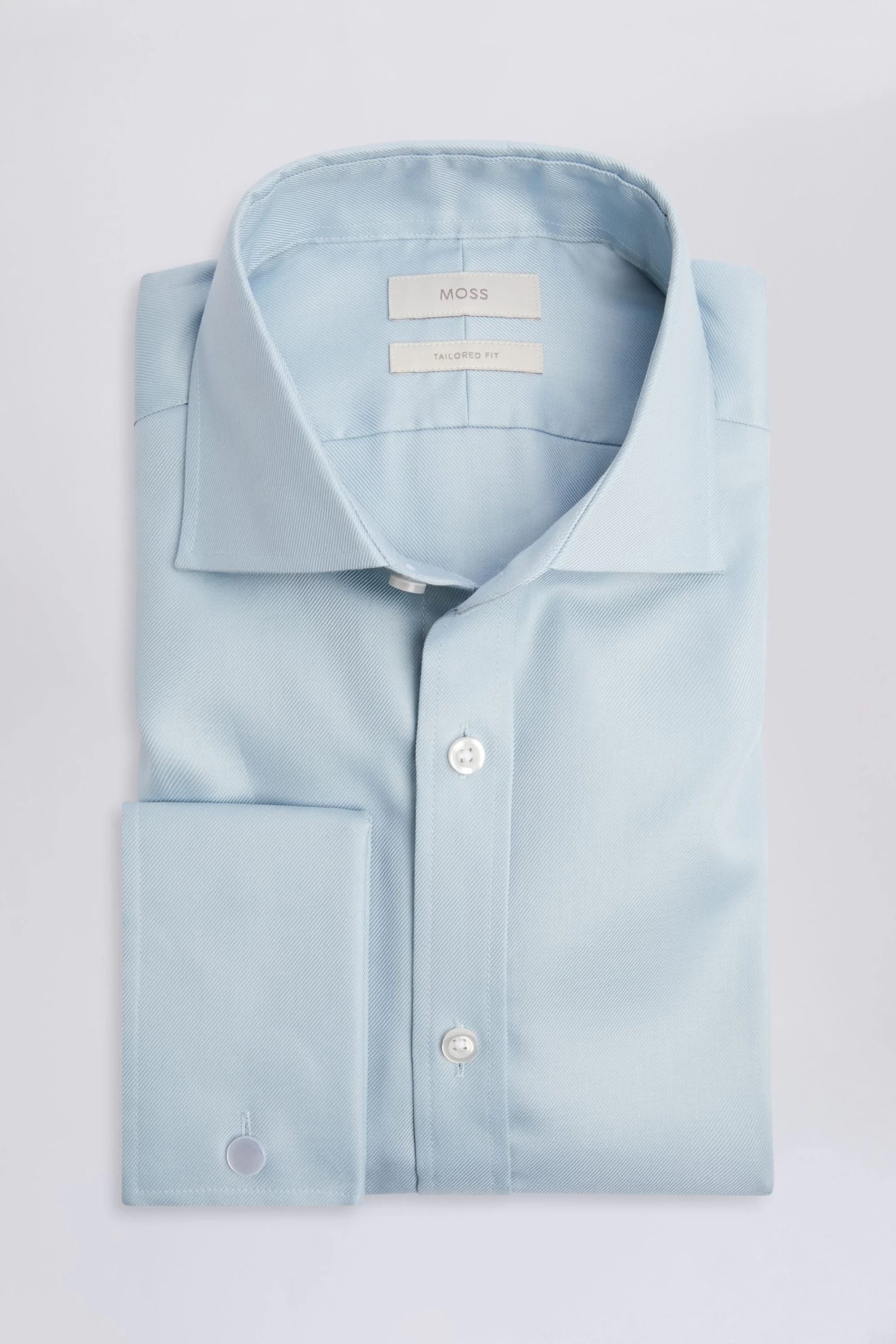 Cut to a tailored fit in our premium pure-cotton twill, Moss long-sleeved blue shirt has a soft sheen that’ll stand up to any special occasion. It’s topped with a cutaway collar and features double cuffs so you can thread through your favourite links.