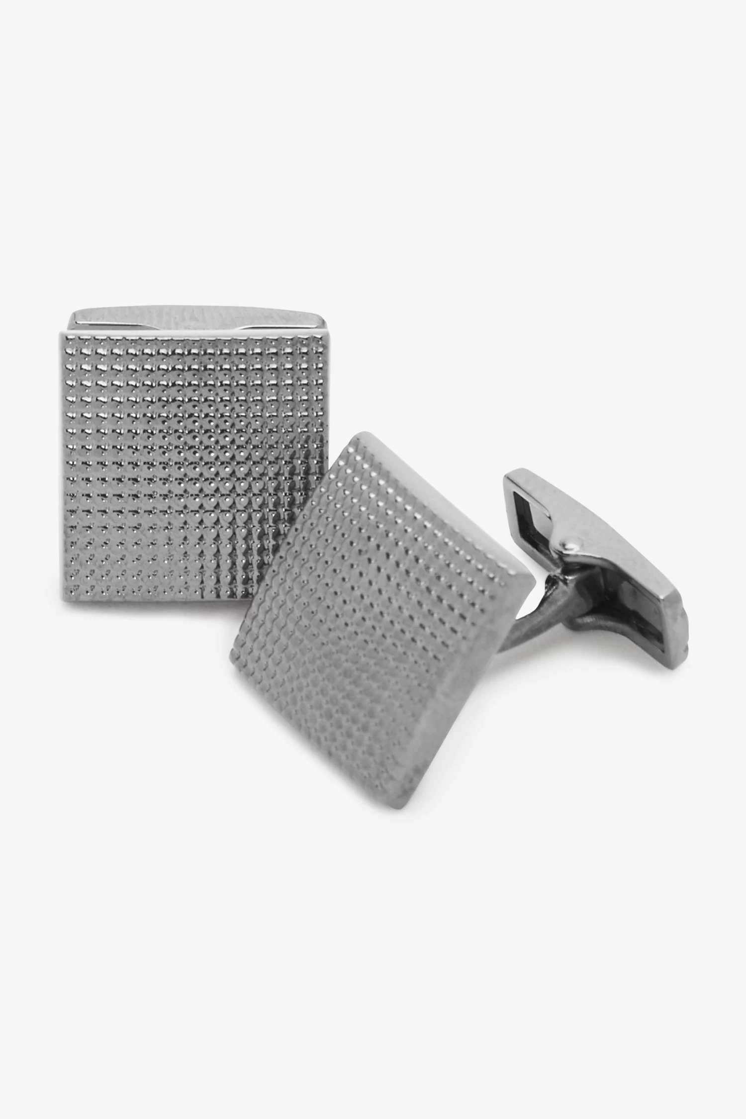 Black square cufflinks with textured front detailing with matching tie clip come in a presentation box. Luxury cufflinks come with swivel fitment. Made with 100% metal.