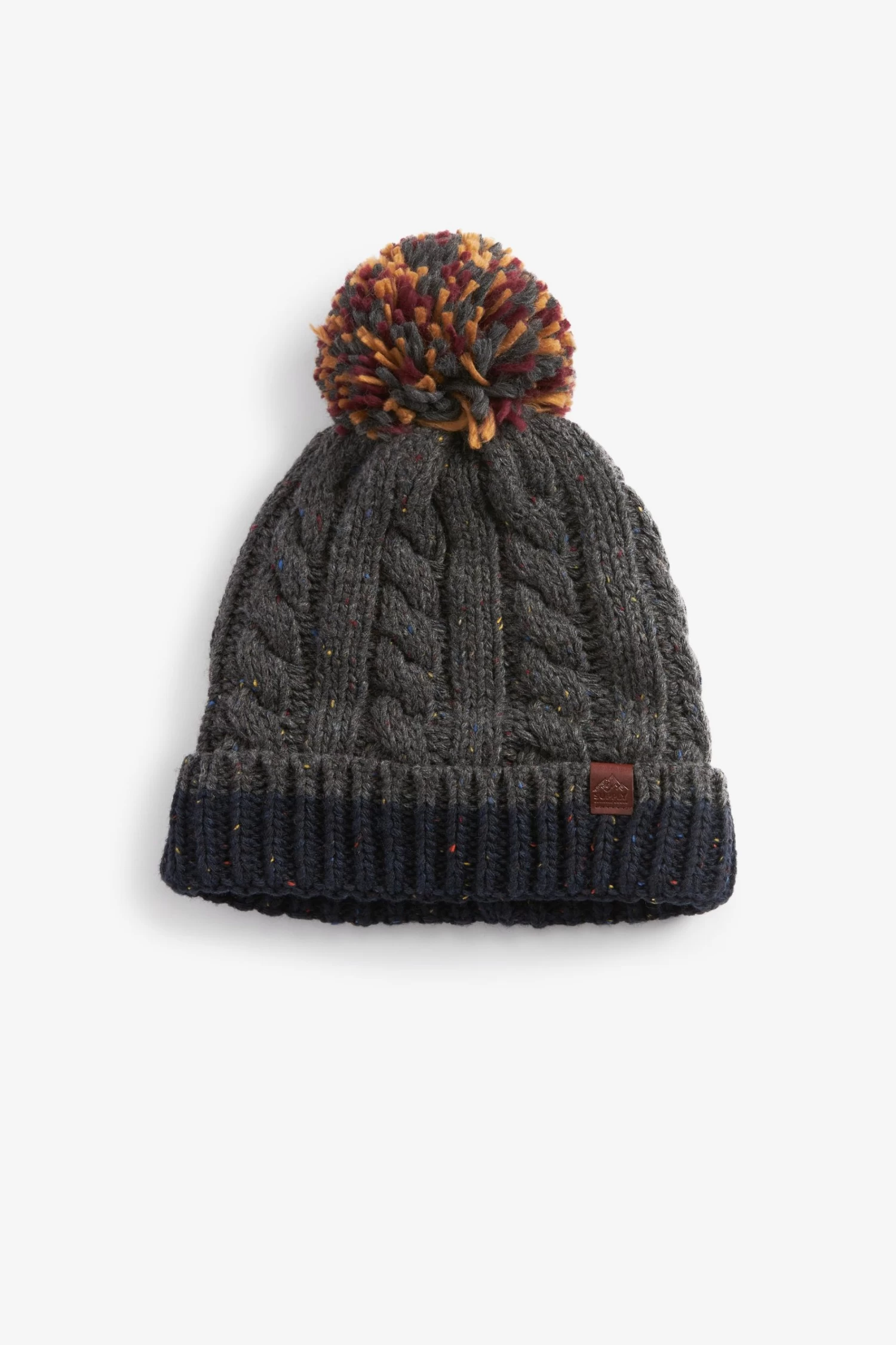 Keep your head out of the cold with this charming bobble hat. Featuring a ribbed turned up brim and finished with a chunky pom pom on the top.