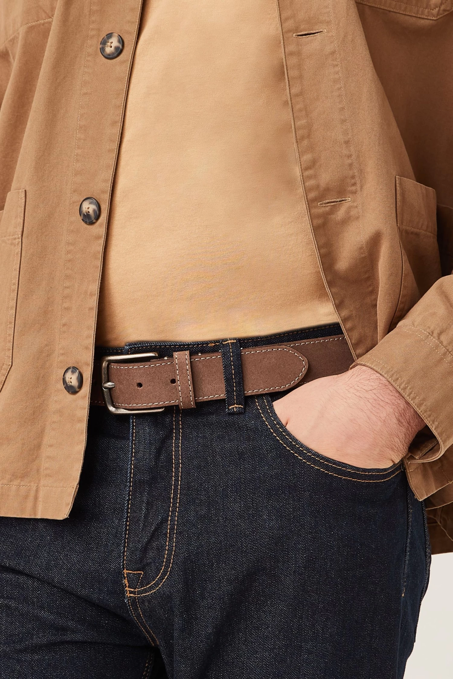 This brown belt is made from durable leather in an oiled finish. Designed in a formal style with gunmetal buckle and single keeper. Width 3.5cm approx.