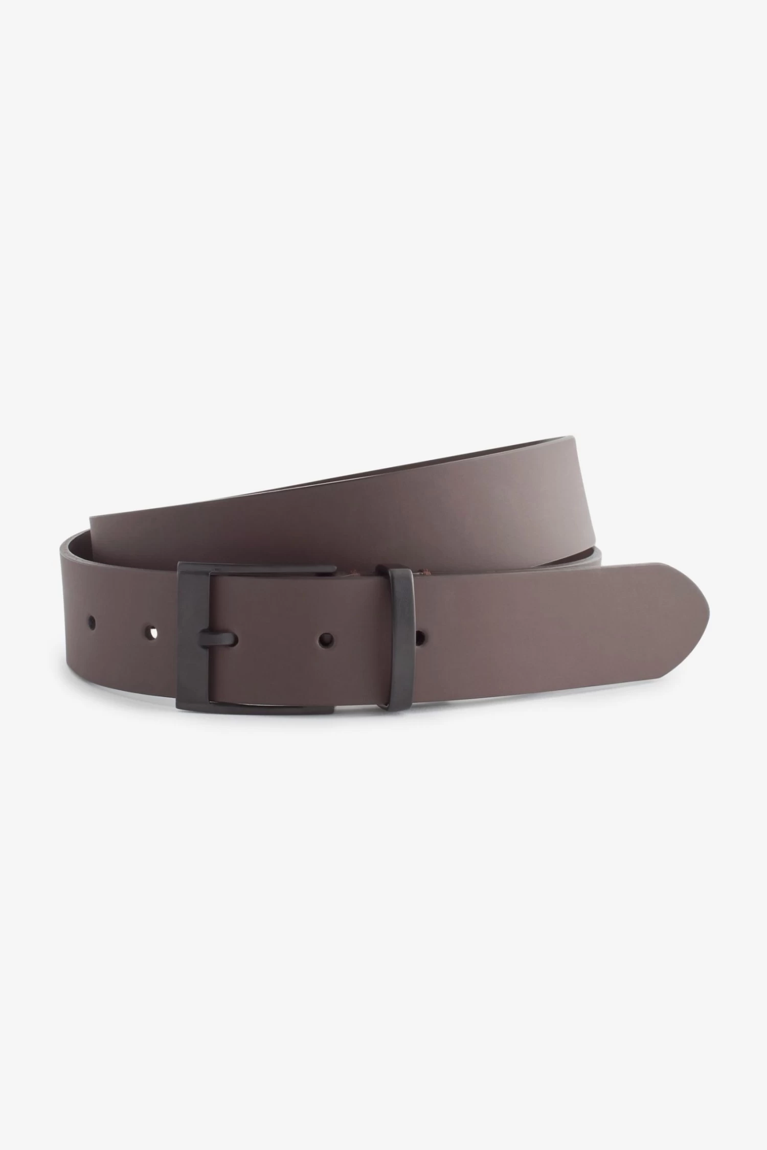 Smooth leather belt. Formal belt. Width approx 3.5cm. Brushed silver buckle. Single keeper.