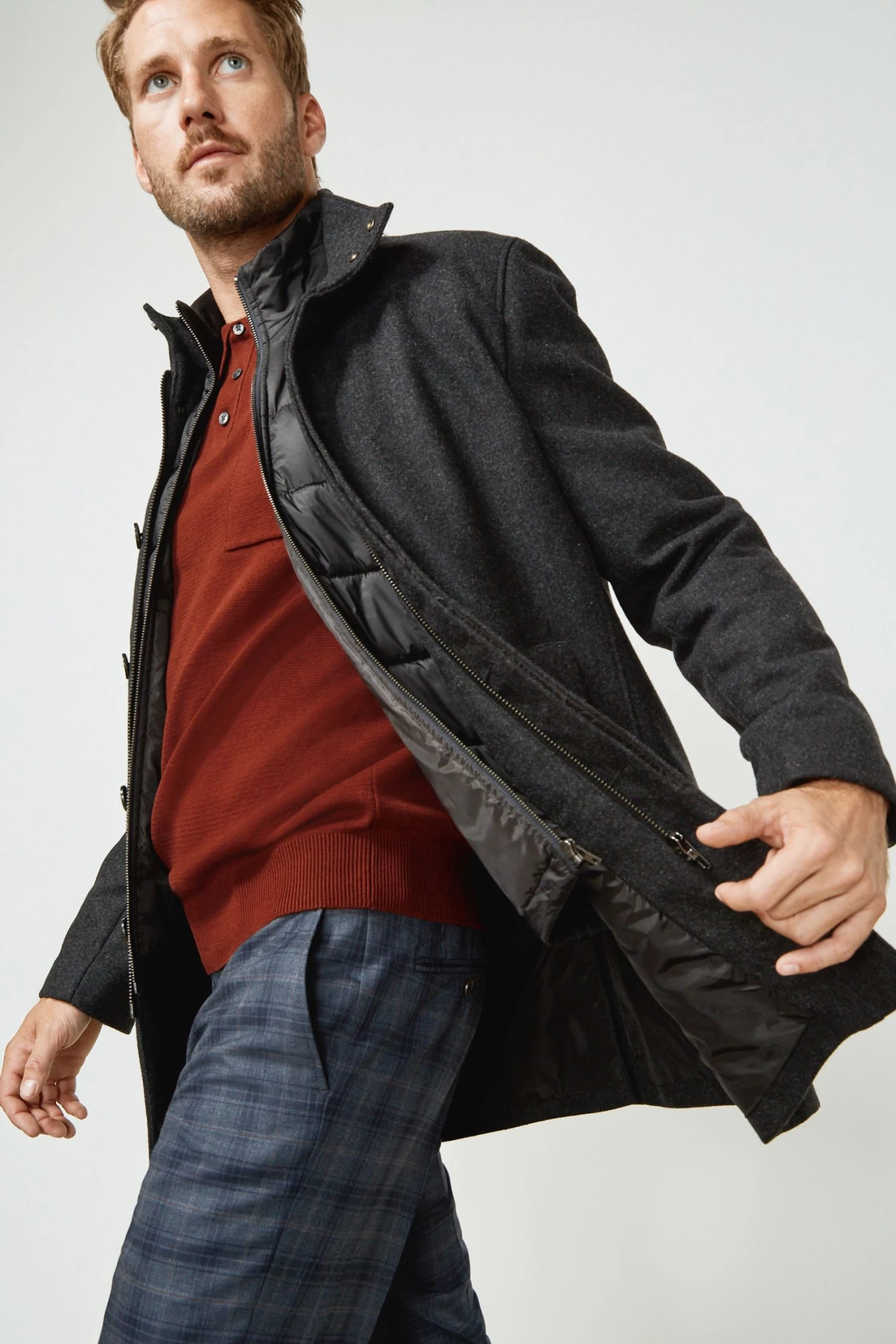 Invest in this signature funnel neck coat and you will not regret it. The smart outer coat is designed in a timeless style with button and zip fastening and side pockets in a cosy wool blend. Added to this is a padded removable gilet which can either be worn as a base layer for added warmth on the coldest days or on its own for those in-between weather days. With three styles in one, you’ll be reaching for this coat time and time again.