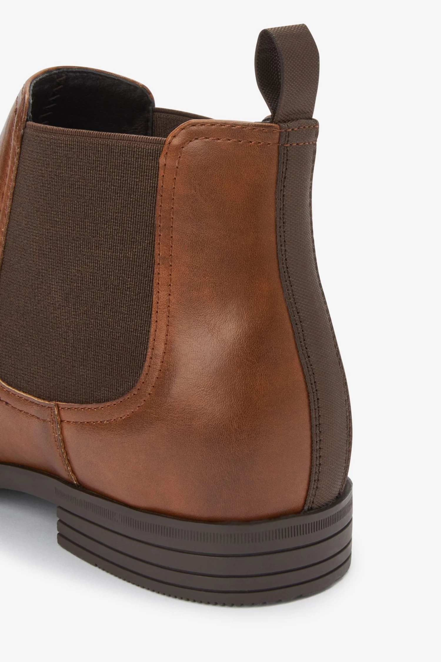 These stylish chelsea boots pair well with any of your winter staples. With a sleek and smart profile, they have textured quarter panel detail and a pull tab at the back. Team with chinos and your favourite polo shirt.