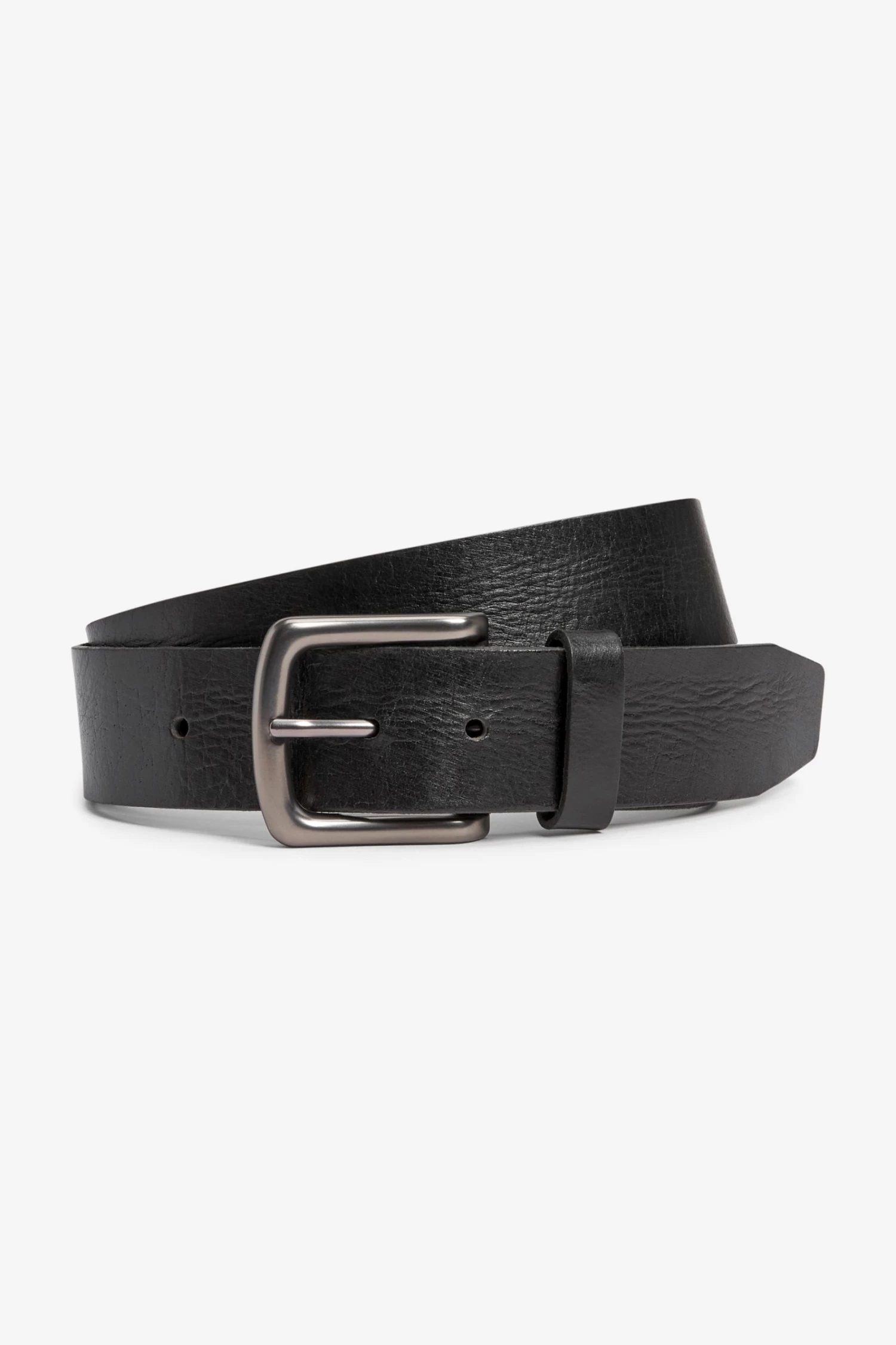 100% Leather. Creased effect. Brushed nickel buckle. Block edge. Washed look. Width 3.8cm approx.