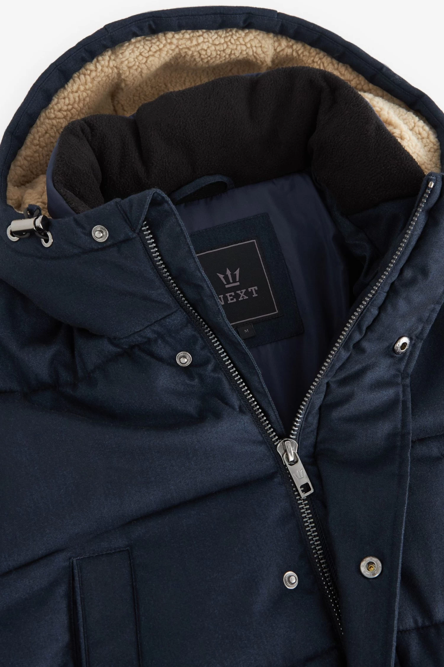 Beat the cold weather with this fashionable and functional puffer jacket. The rich navy longline piece is shower resisitant and padded for extra warmth with a smart textured wool look and boasts an adjustable, borg lined hood and hem with storm cuffs to ensure your comfort at all times. The winter coat is secured with both a zip fastening and popper buttons and boasts front pockets to keep your hands warm. Next – your ultimate style destination for all of life’s essentials. With quality at the heart of everything we do, Next interprets the latest trends to create modern, effortless, easy to style pieces for your home and wardrobe. The hottest brands, the latest trends: find them all here.
