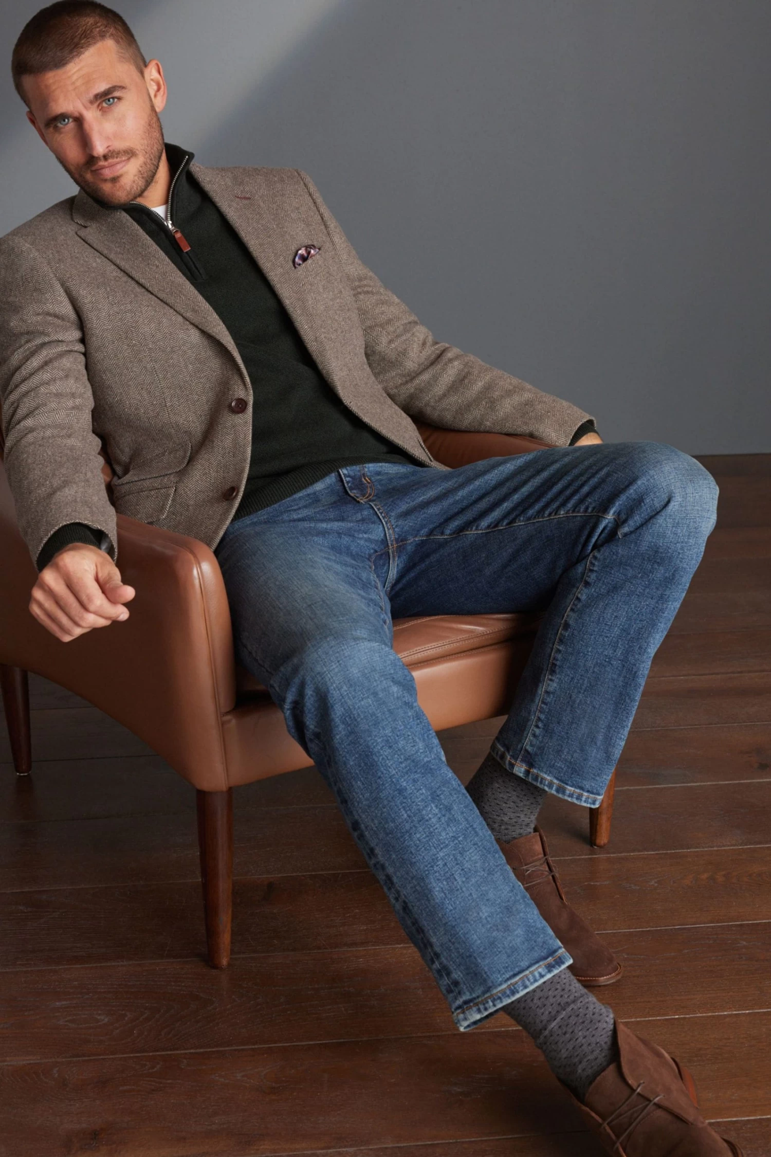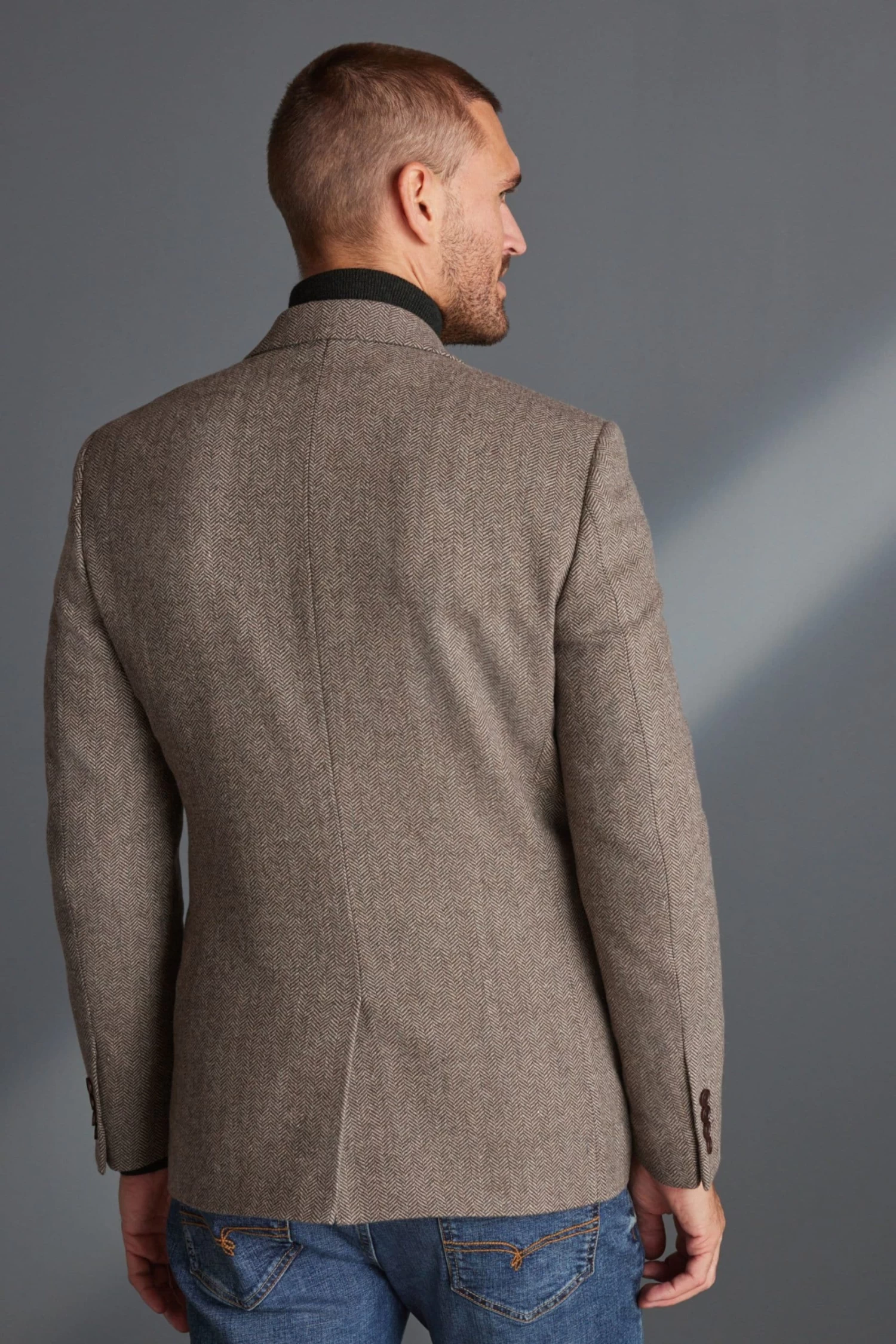 Made with fine Italian wool from Nova Fides, this classic herringbone jacket is a quintessentially British wardrobe addition. Finished with contrast corozo buttons and a stylishly printed internal lining. Linings may differ in imagery. Lapel pins and pocket square not included.
