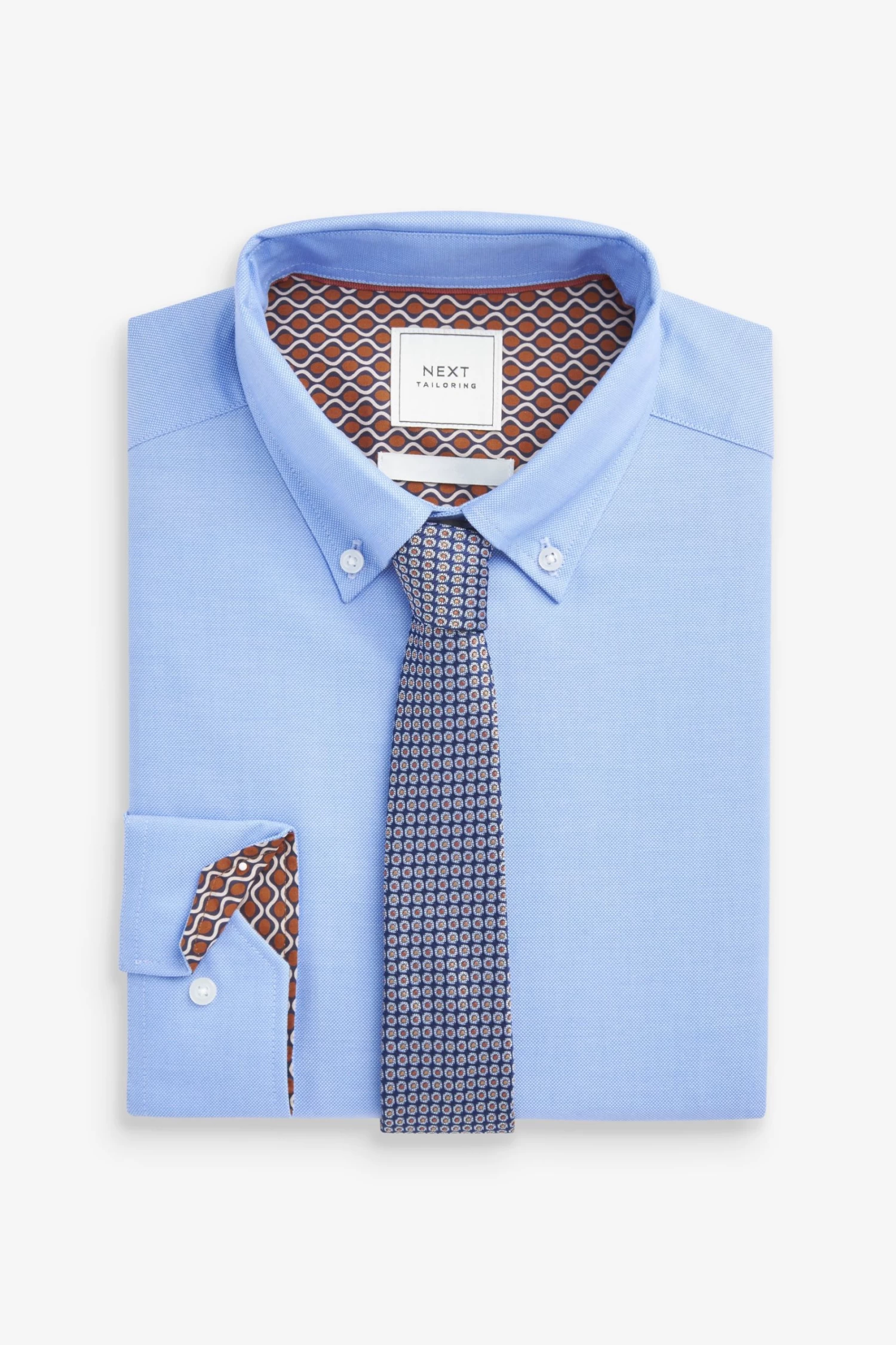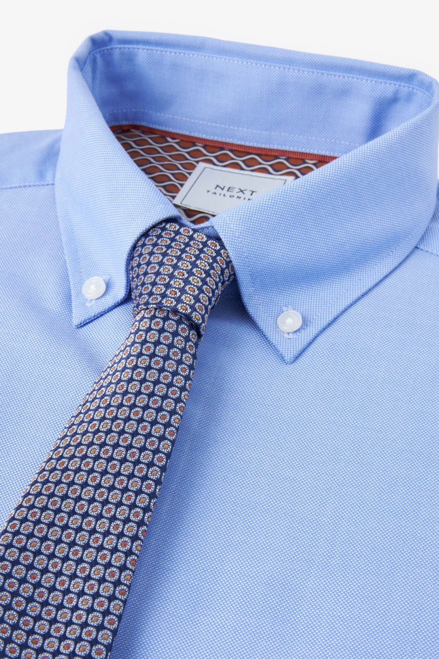 Crafted from a lightweight cotton mix fabric, this classic style shirt is an everyday wardrobe saviour. With single cuffs, contrast buttons and patterned trim inside neck and collar detail. Comes complete with coordinating tie. Lightweight cotton mix fabric. Single cuffs. Contrast buttons. Patterned trim inside neck and collar detail. Coordinating tie. Cotton blend. Printed inner lining. Button through.