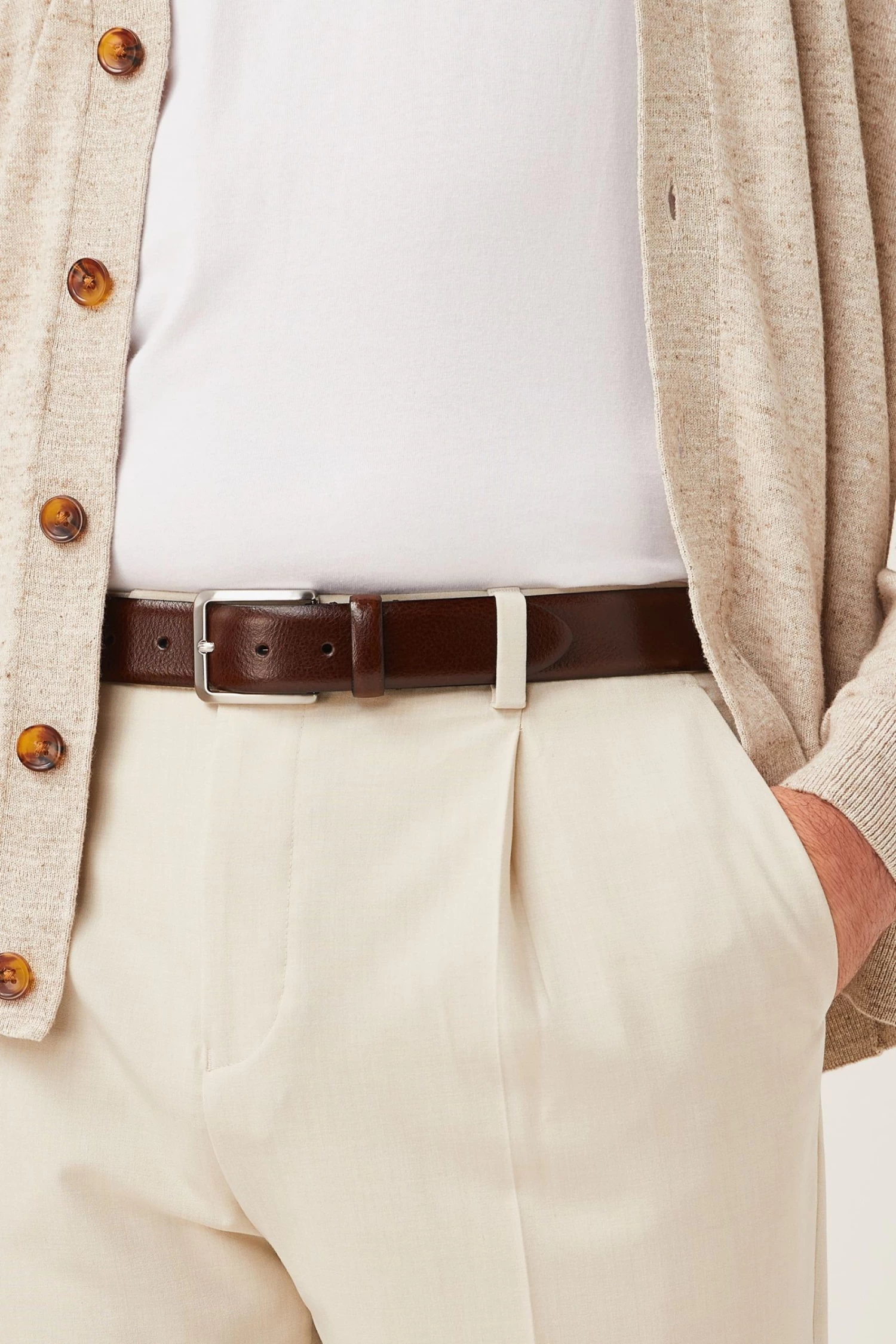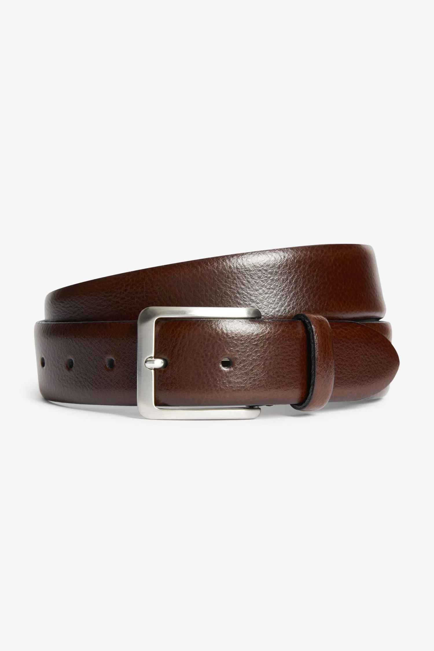 Our signature smart belt is crafted from durable leather with a PU coating. Designed in a formal style a brushed silver tone buckle and single keeper. Width 3.5cm approx.