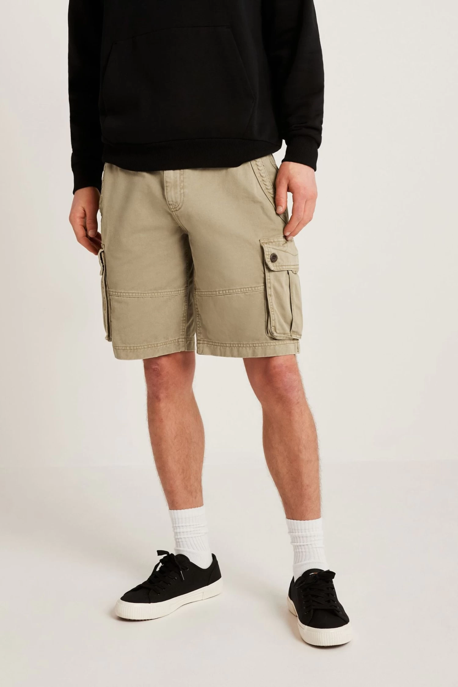 Our premium laundered cargo shorts are made from 100% cotton in an on-trend utility style. Designed with six pockets, a zip fly and button fastening, these shorts will look great styled with a simple t-shirt and trainers.