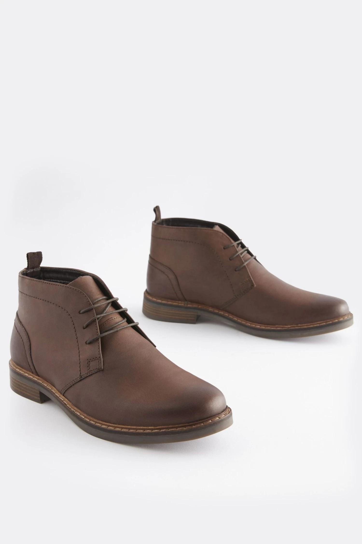 Leather upper Chukka boots Lace-up Regular fit Waxy finish Chunky contrast crepe soles Ortholite foam insole for all day comfort