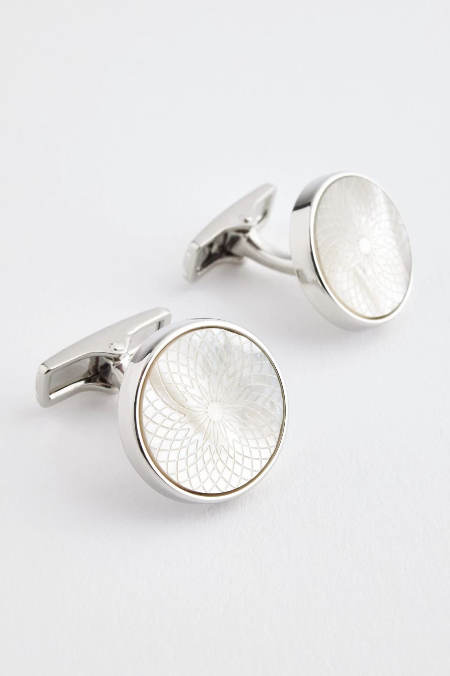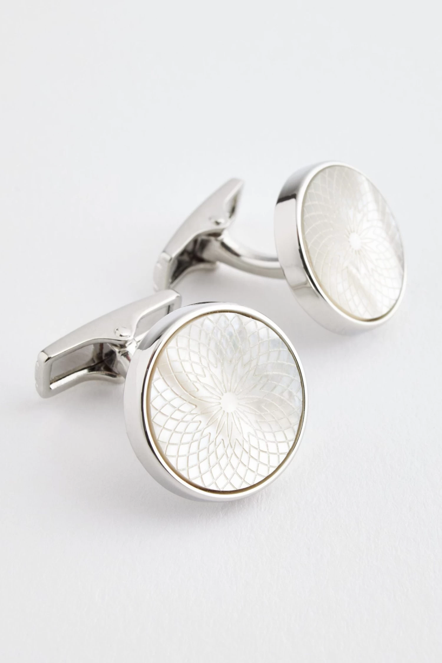Round faux mother-of-pearl cufflink with custom pattern. Luxury swivel fitment. Comes in a presentation box. 100% metal. Round faux mother-of-pearl. Customised pattern. Luxury swivel fitment. Comes in a presentation box.