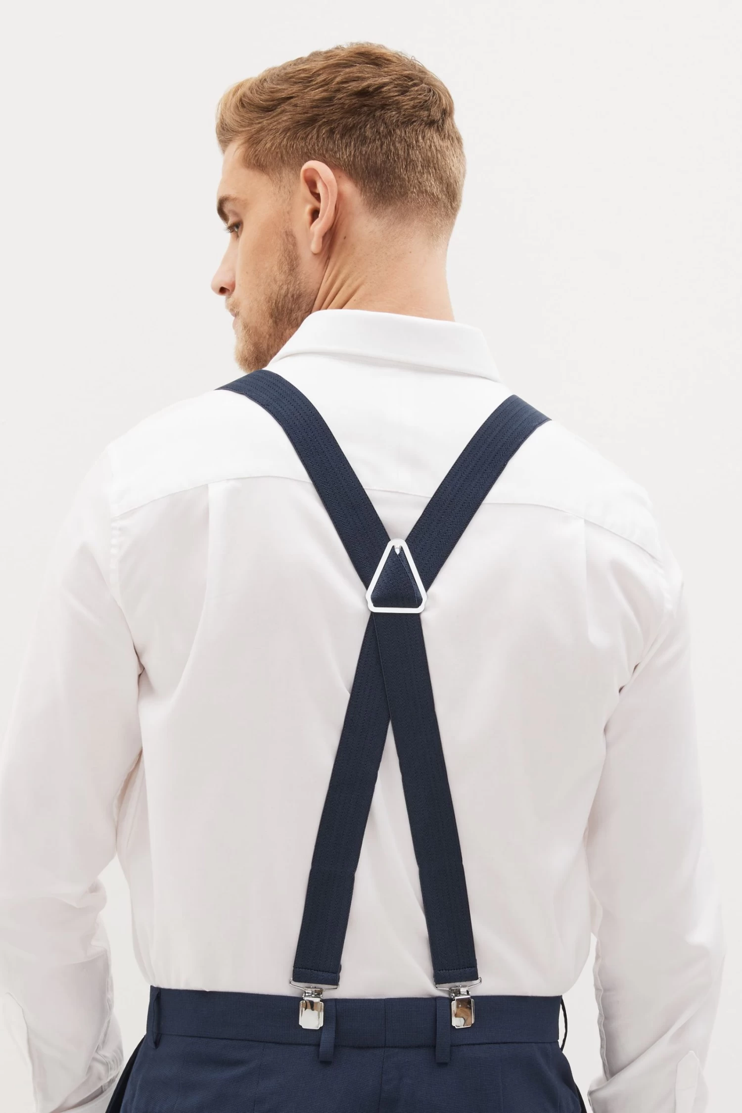 These stylish Herringbone braces have a 3.5cm width. Finished with silver-coloured fitments with two clips at the front and two at the back.