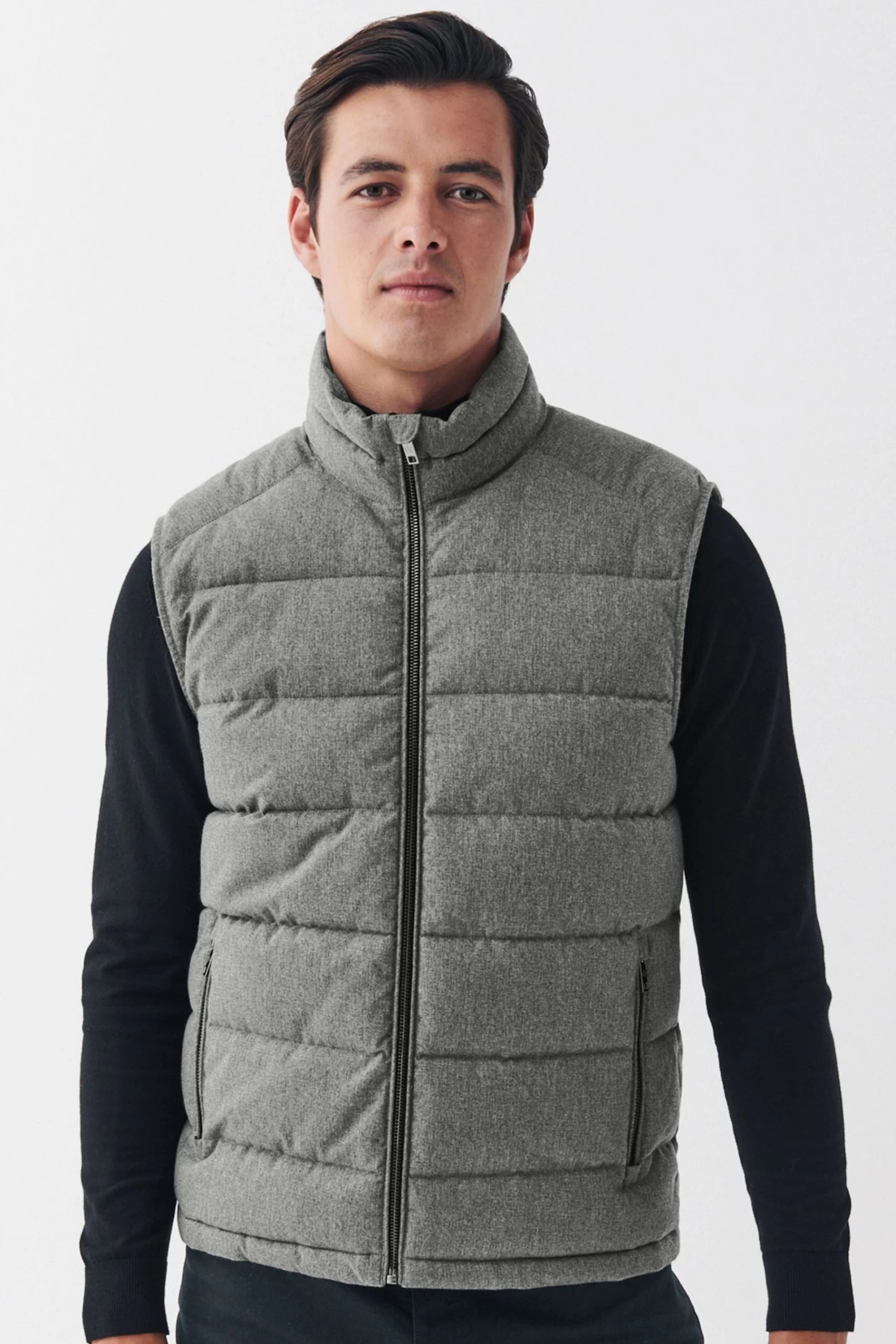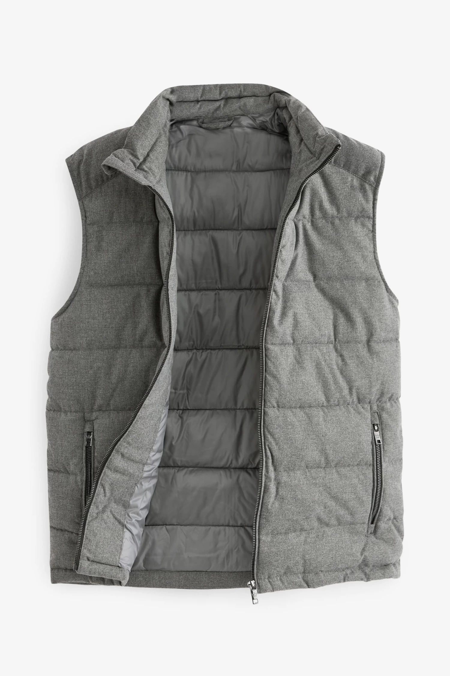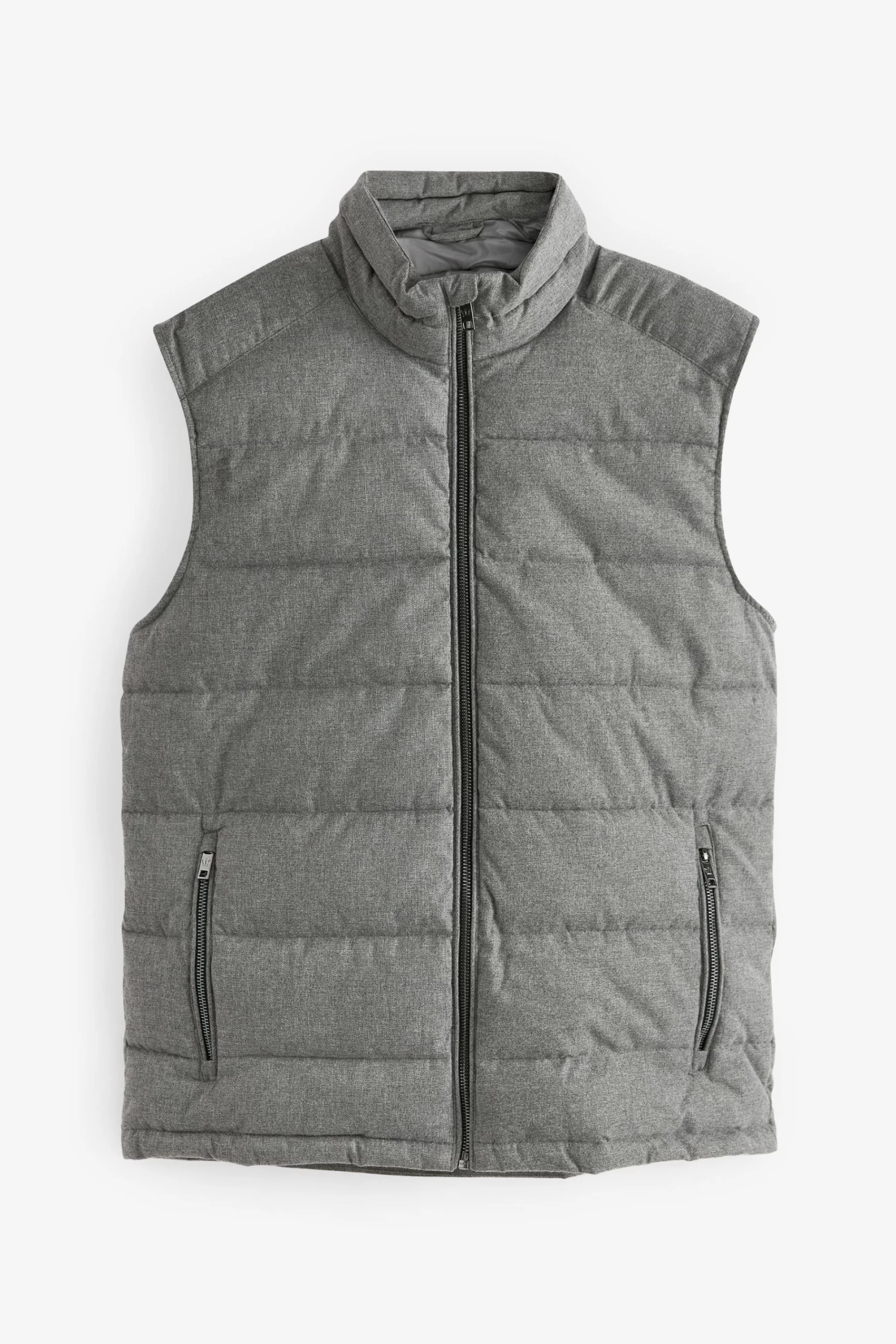 The gilet is a classic outerwear essential. Helping you through those tricky transitional months this piece is made with a softly textured wool look outer, high funnel neck, silver-tone front zip fastening and zipped front pockets.