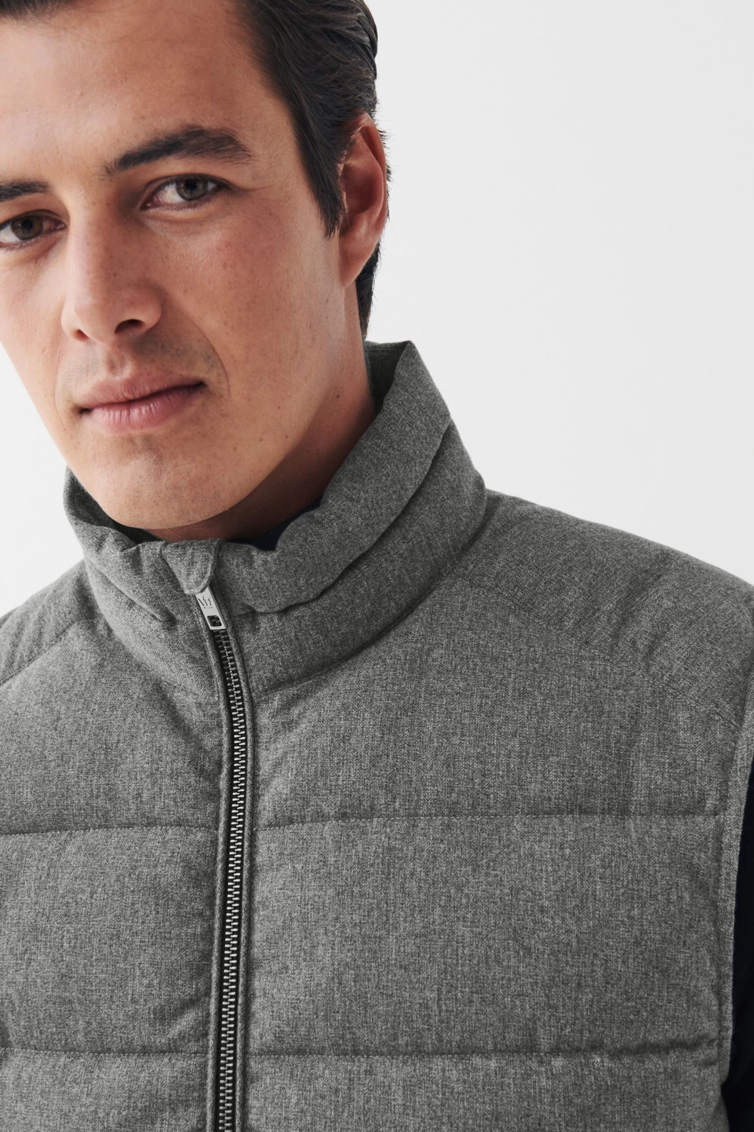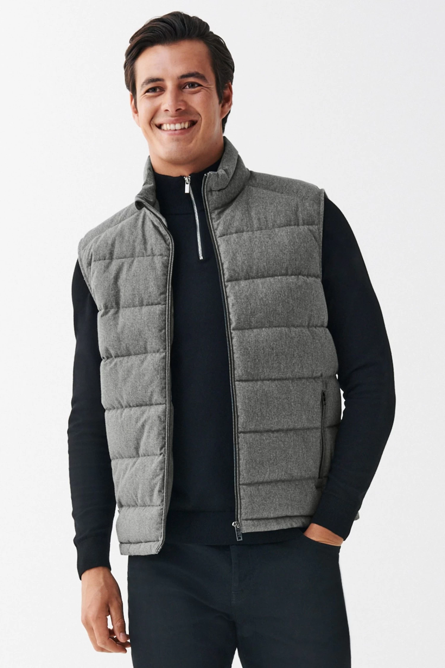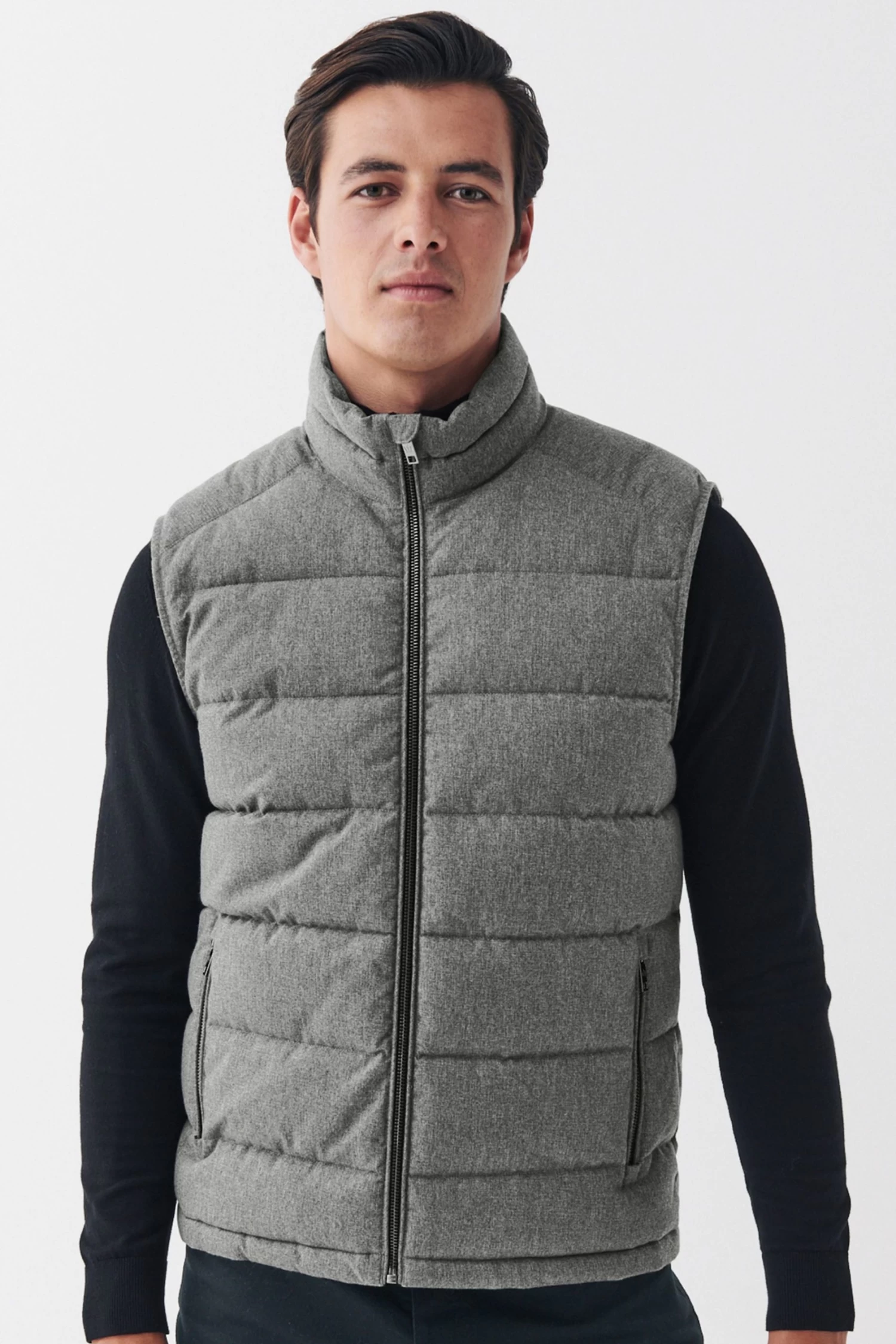 The gilet is a classic outerwear essential. Helping you through those tricky transitional months this piece is made with a softly textured wool look outer, high funnel neck, silver-tone front zip fastening and zipped front pockets.