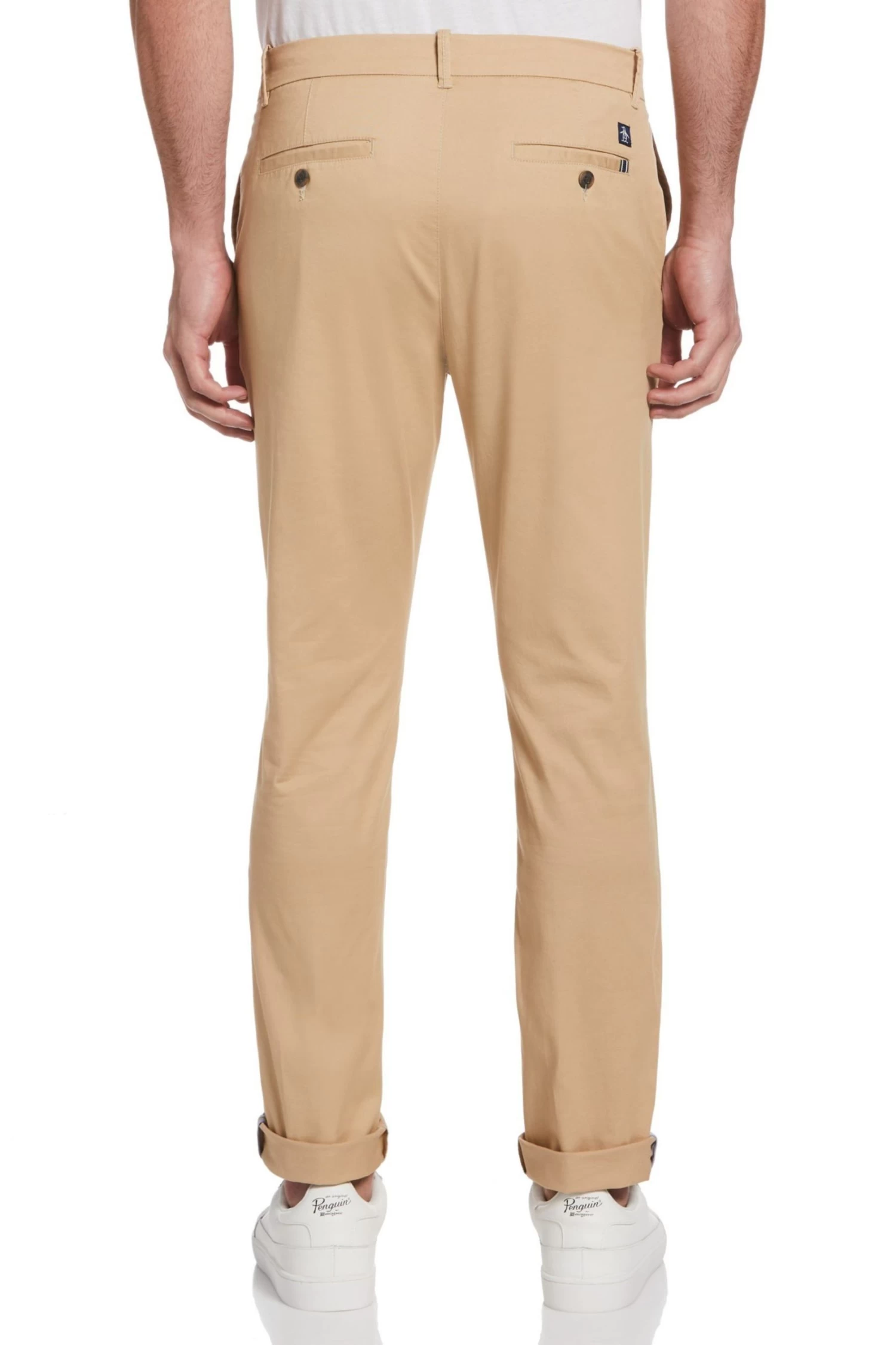 An everyday basic that’s anything but boring, these Original Penguin men’s chinos are made with 30% recycled cotton for an eco-friendly fashion choice. The versatile chinos for men are crafted from lightweight twill fabric, with added stretch for a comfortable fit. They have a sleek flat front design, with pockets at the front and back to keep essentials within easy reach while you’re on the go.