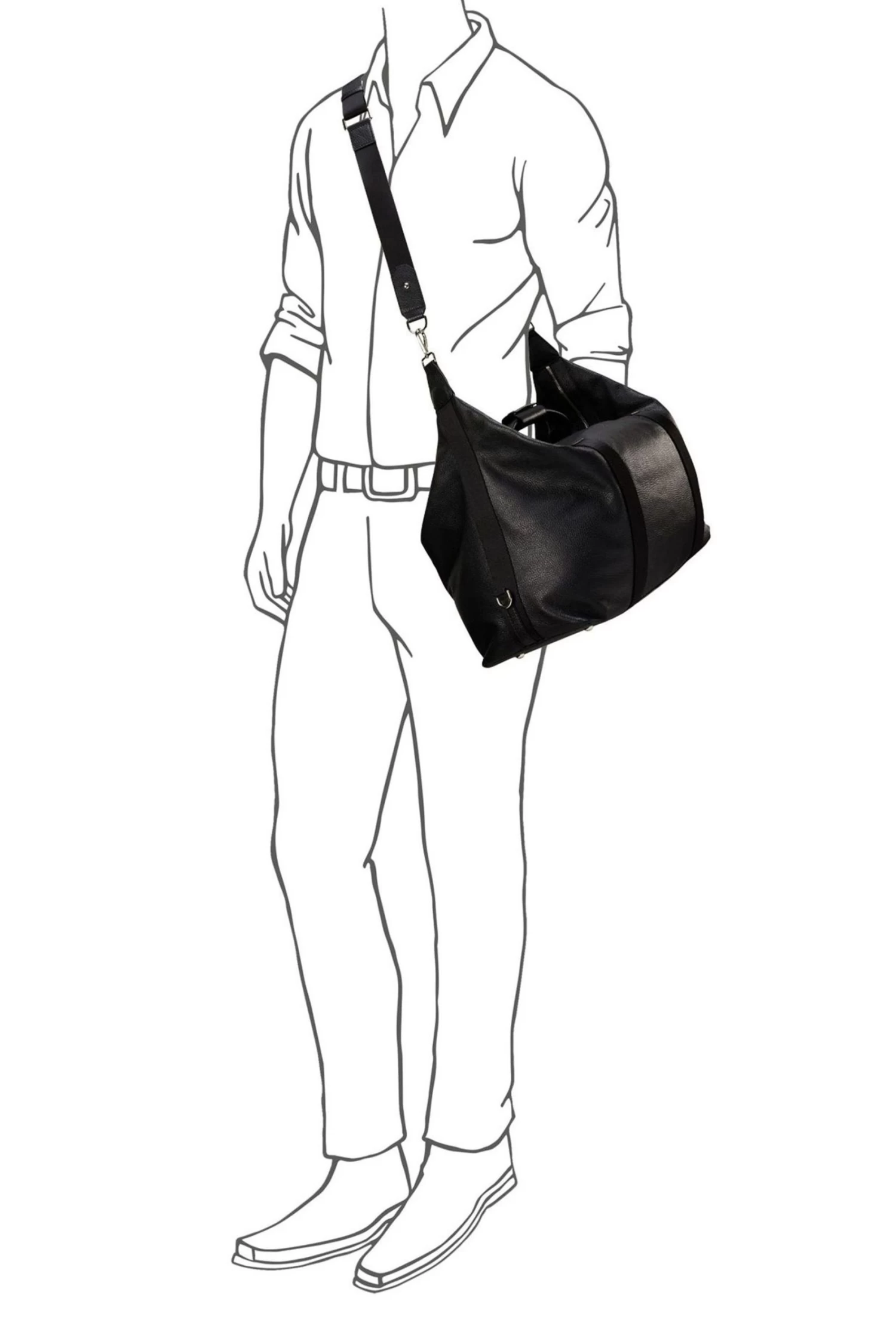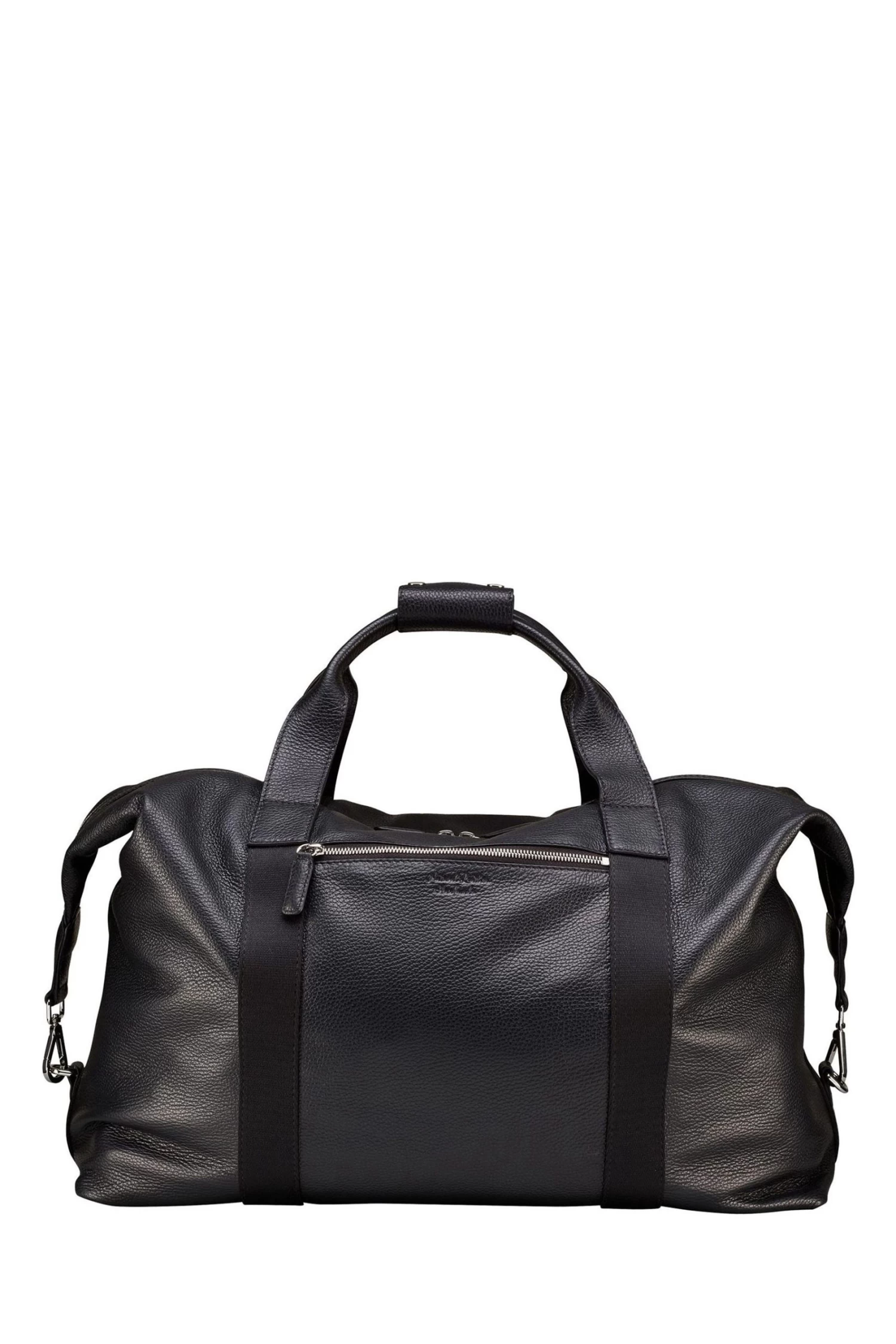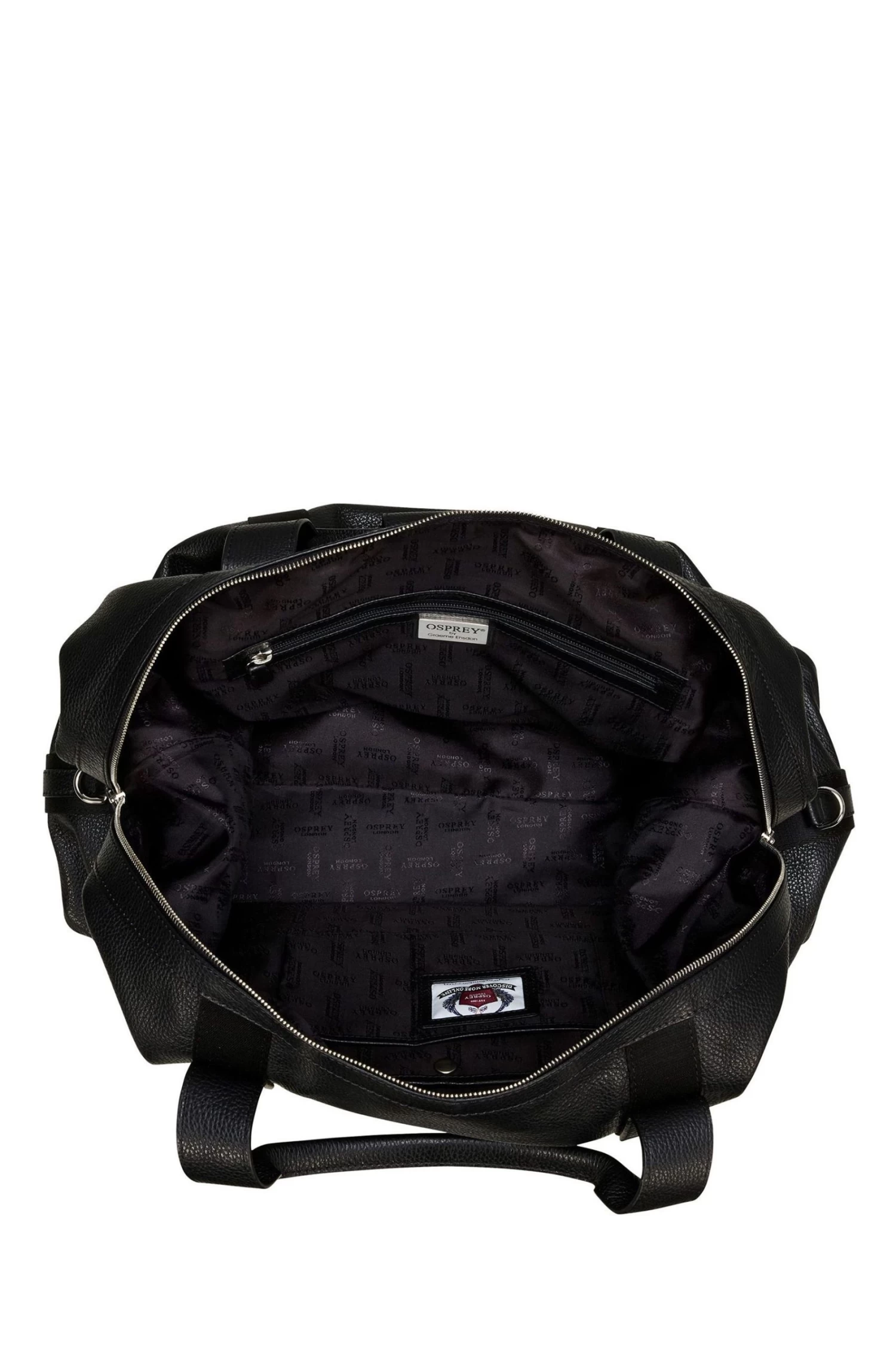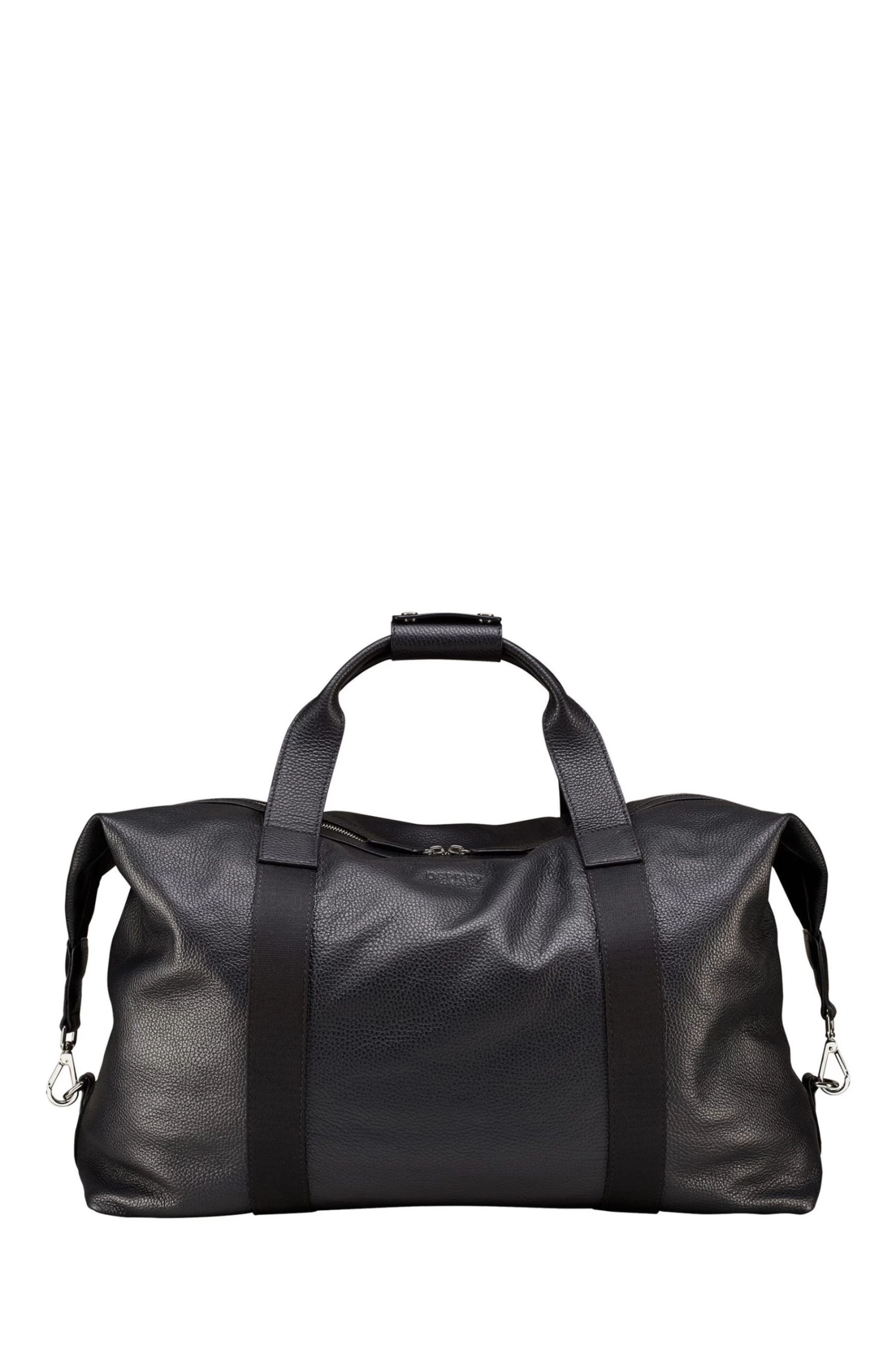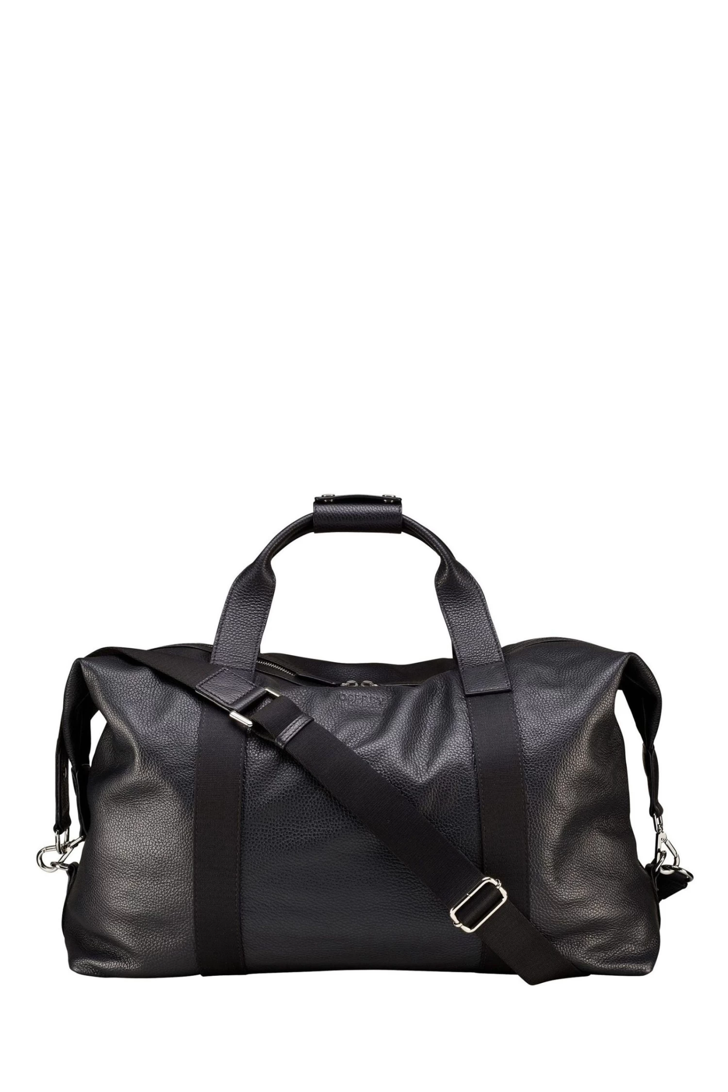 OSPREY LONDON luggage holdall, handcrafted in supple Grainy Hide leather. Features adjustable/detachable nylon webbing cross-body strap. The spacious interior has a large slip pocket with a popper clasp as well as two slip pockets. Dimensions: H: 27 x L: 56 x W: 35 cm (11cm handle height) (15-39cm strap height). Material: Grainy Hide leather. .