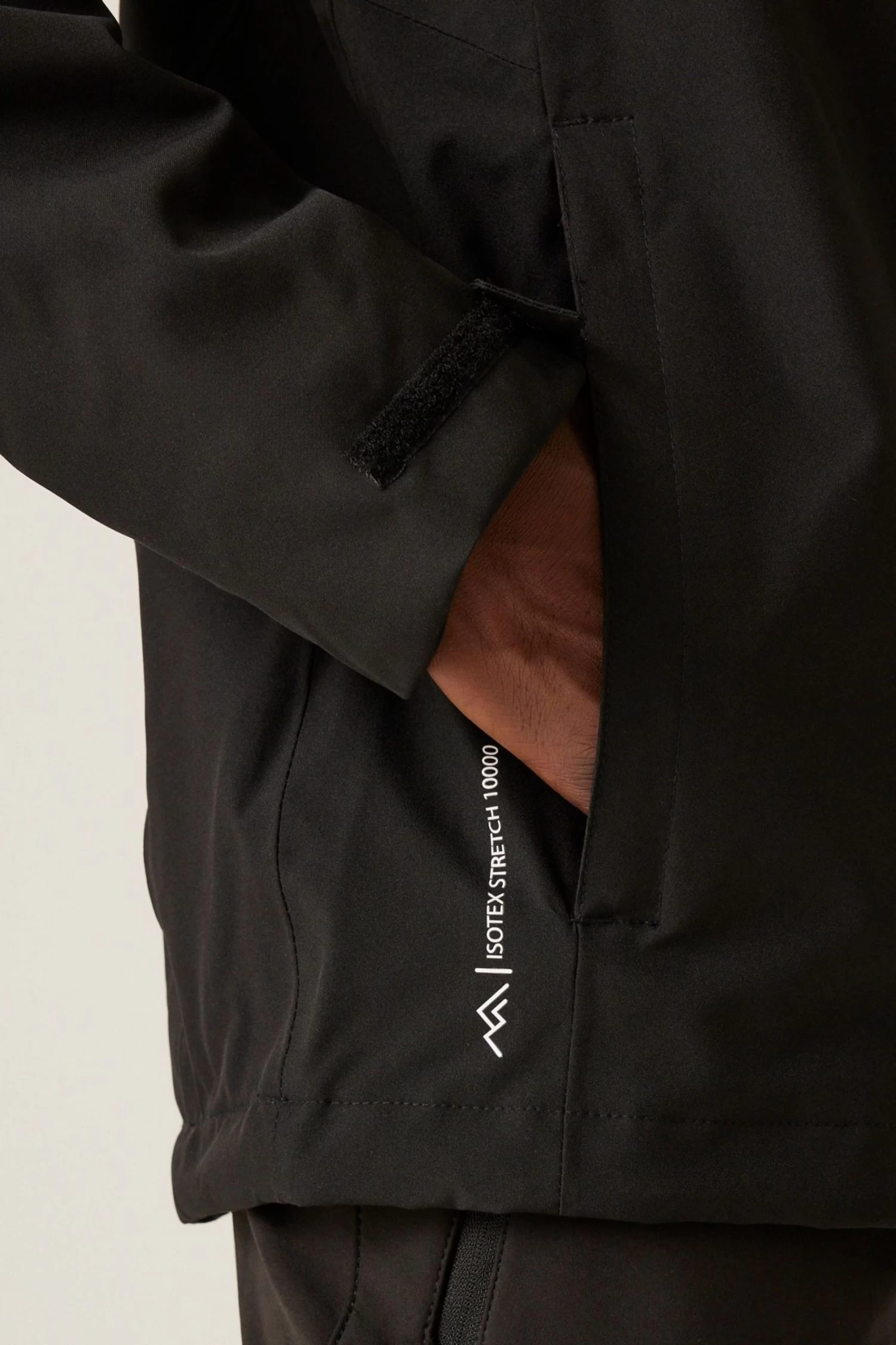 The men’s Birchdale Shell Jacket from Regatta is made of stretch Isotex 10,000 fabric with a DWR (Durable Water Repellent) finish to deliver waterproof and breathable protection with freedom of movement. The peaked hood with two-way adjusters provides full coverage. With the Regatta Outdoors badge on the sleeve.