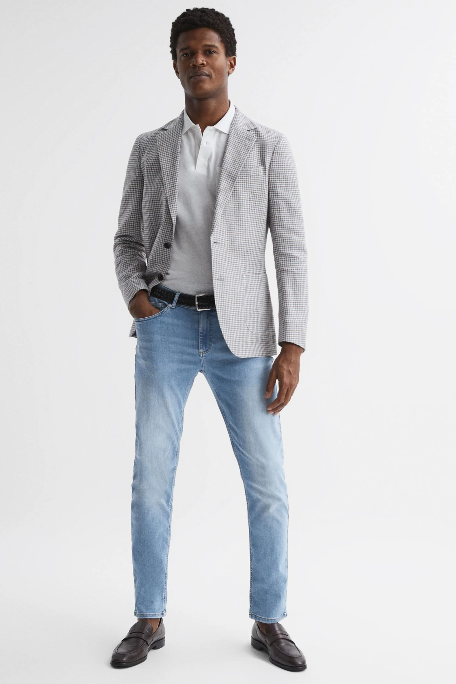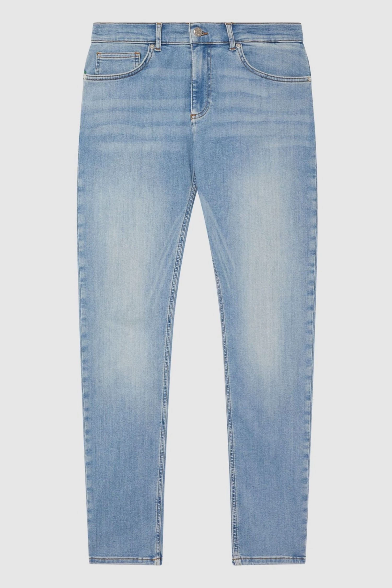 Update your wardrobe classics with the slim-fit Aniston jeans. They’re a light-wash denim with lighter patches to the knees for a worn-in look. Style with trainers for casual moments, or with brogues and a blazer for office days. Zip fly and button closure Five-pocket styling Slim fit Reiss partners with Better Cotton to improve cotton farming globally. Better Cotton is sourced via a system of Mass Balance and is not physically traceable to end products. The model is wearing a size 32. Measurements of model: Height 6ft 2.5 / 189cm.