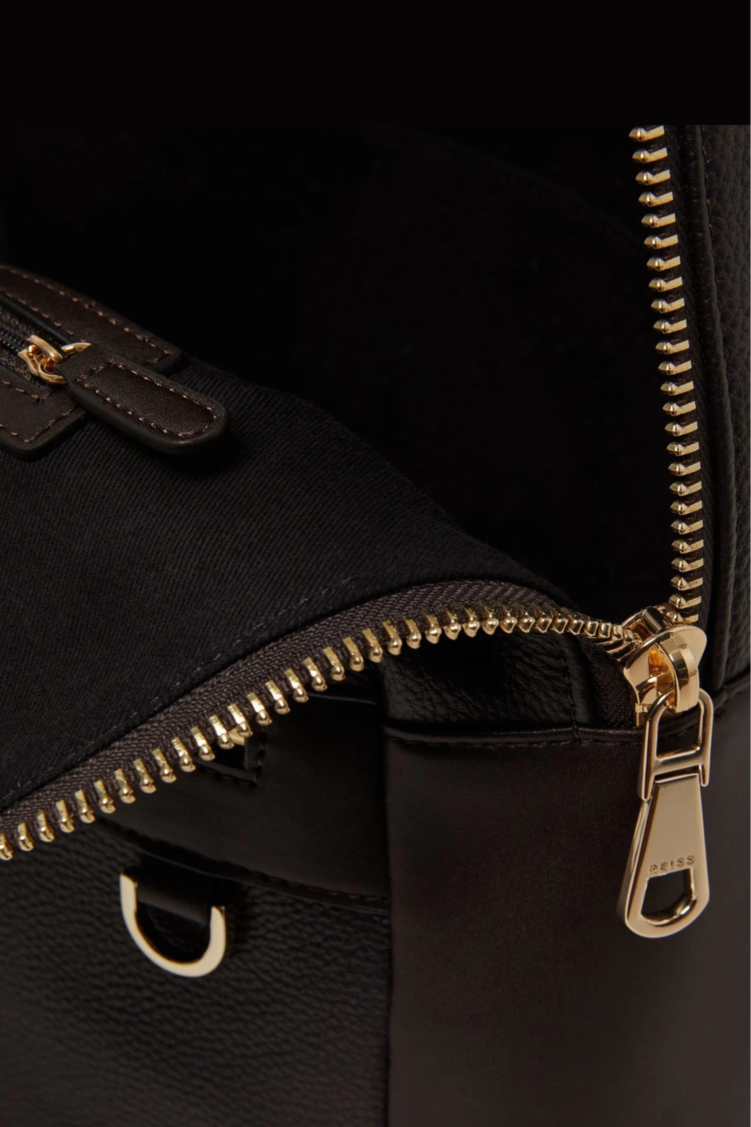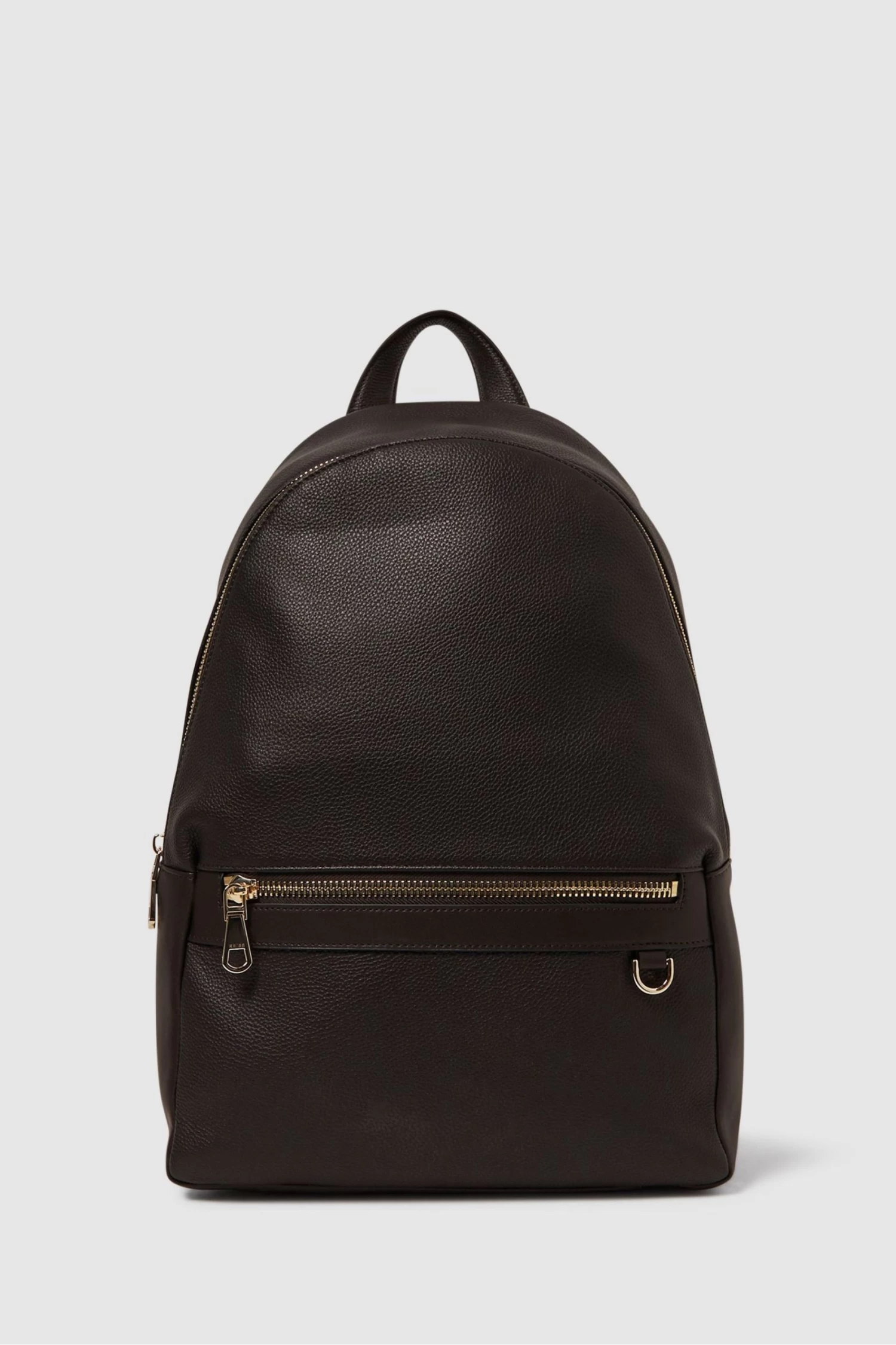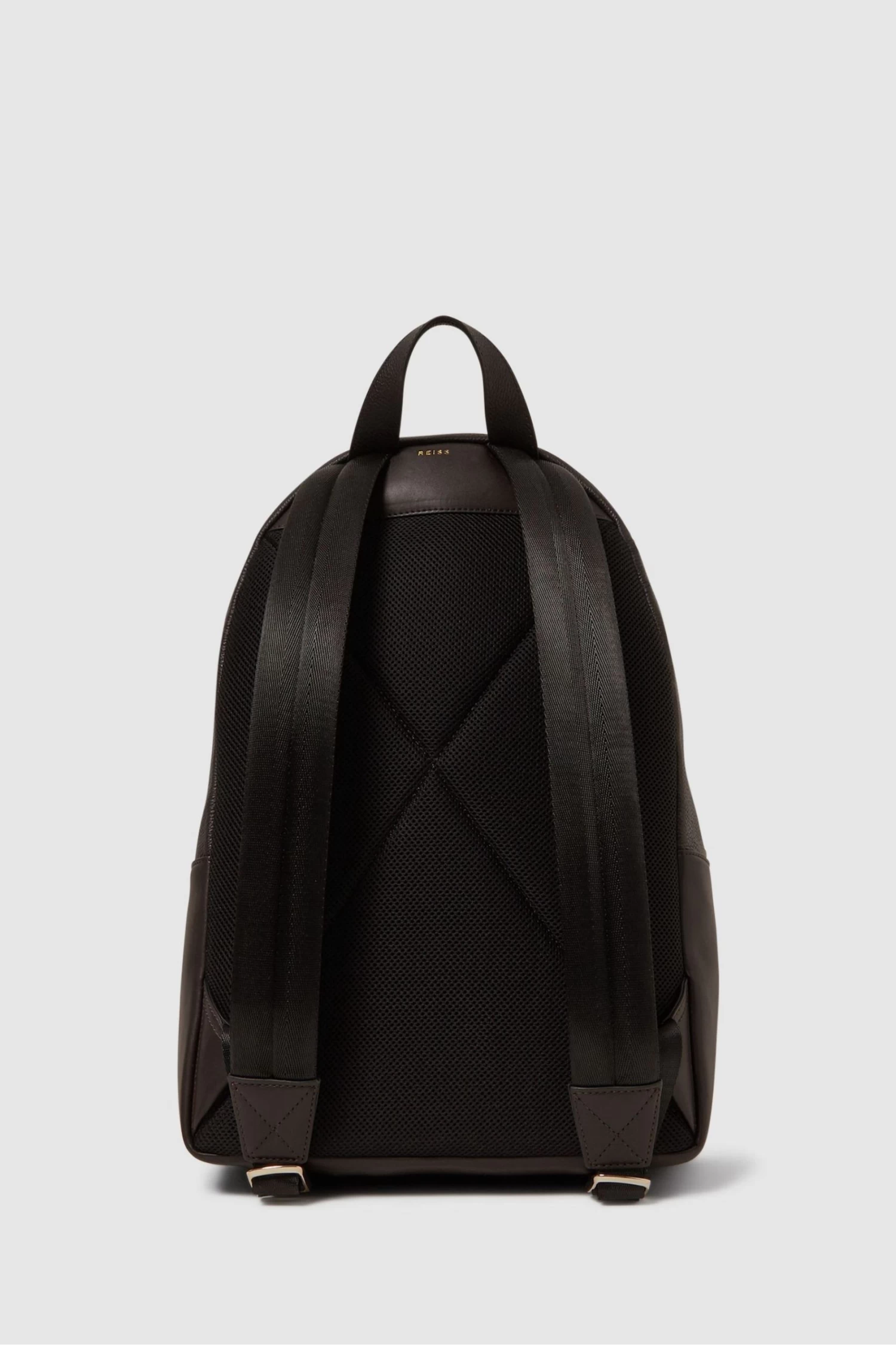 Commuter styling gets a luxe update thanks to the black Drew backpack. Crafted from leather and fitted with a mesh back panel, this is a hardwearing, comfortable option for everyday use. It has one main zipped compartment and a front pocket for essential items. Internal pockets aid organisation, and adjustable shoulder straps customise the wear. Leather construction Zipped main compartment Adjustable shoulder straps Zipped front pocket Internal zipped pockets Silver-tone hardware Mesh back panel Cotton lining