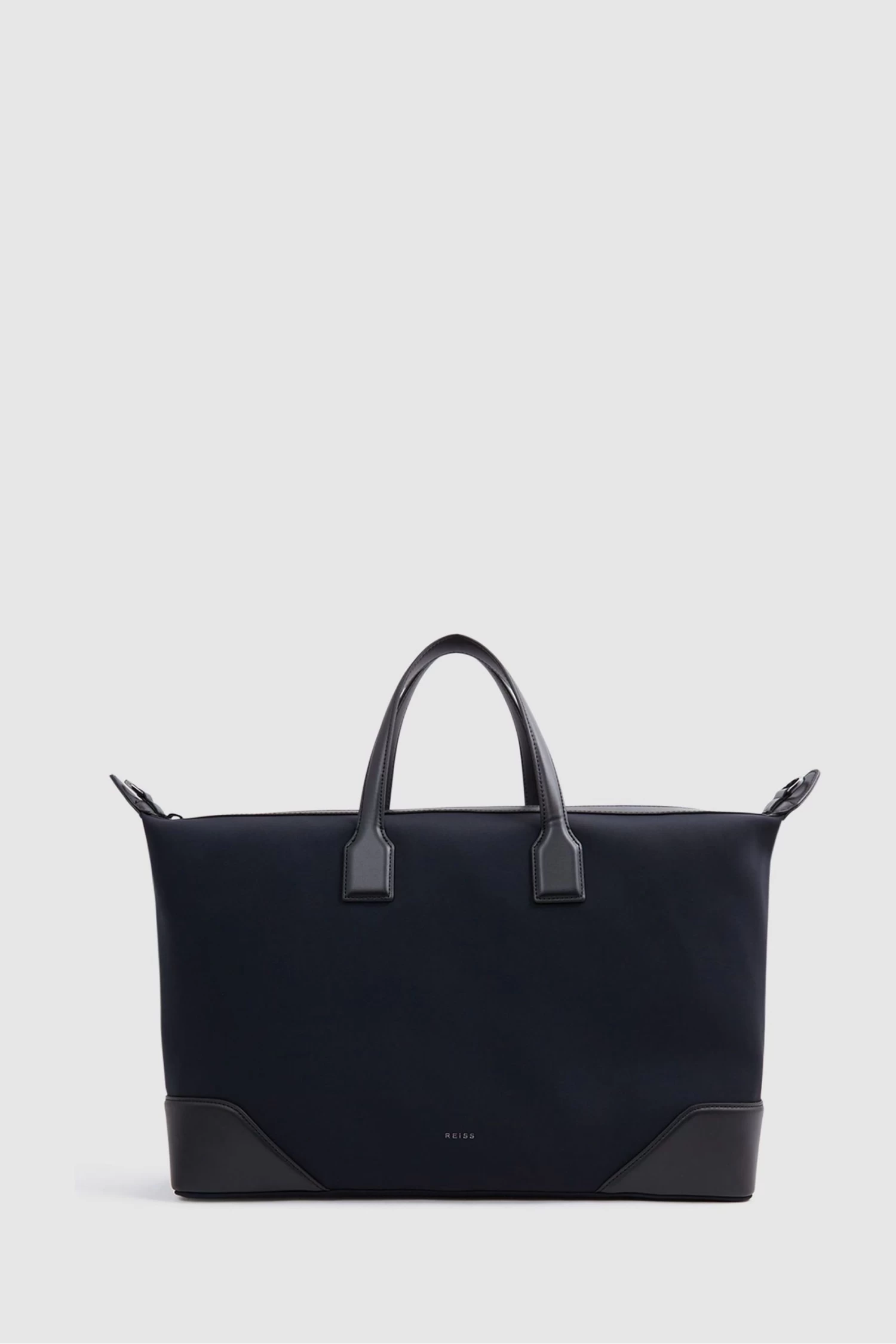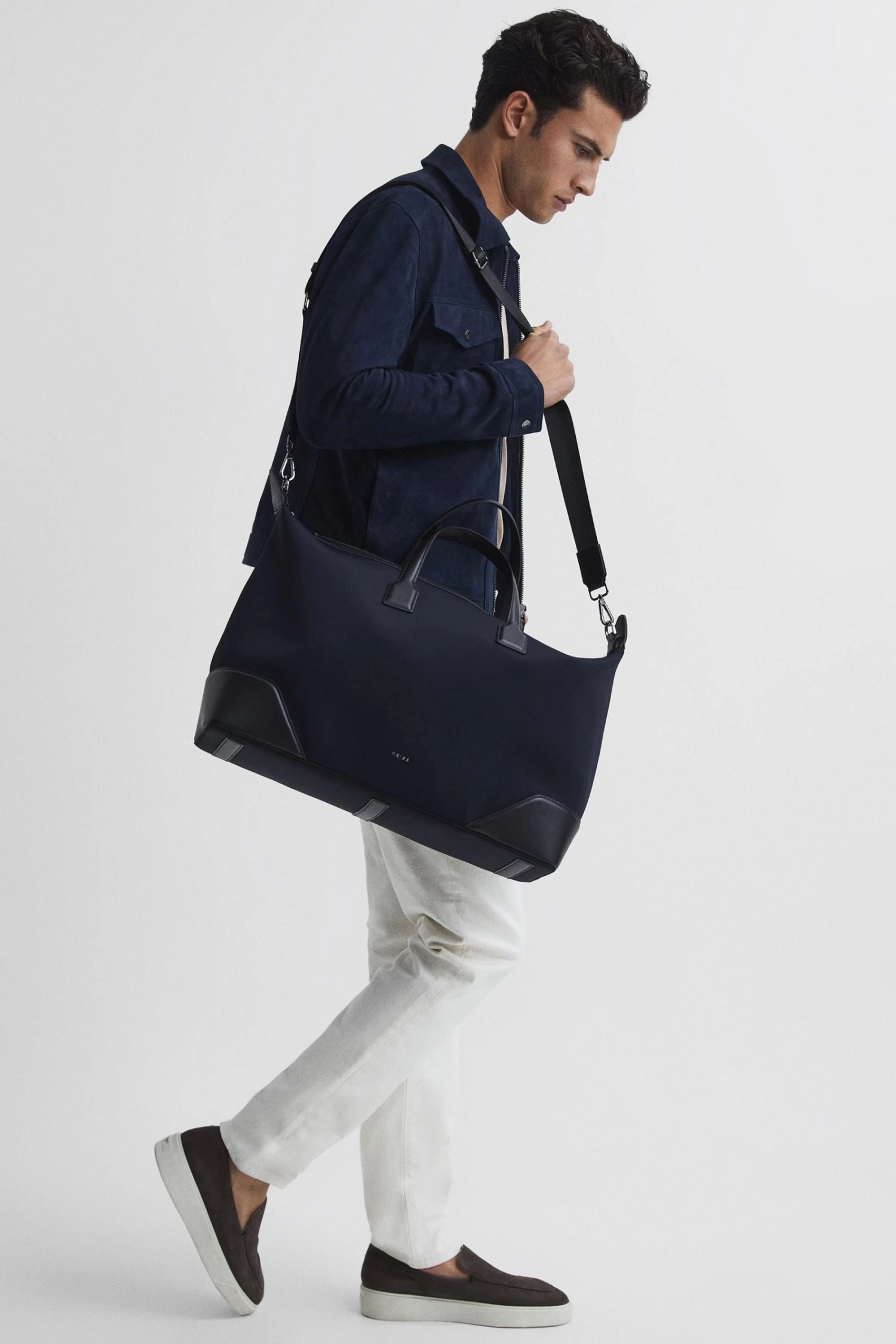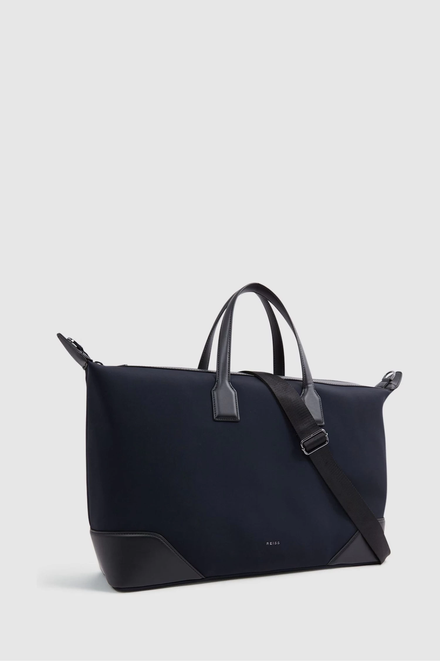 Travel in style with the Elliot holdall in dark navy, crafted from neoprene for a soft touch. It features grab handles and a removable, adjustable shoulder strap for versatility. Neoprene fabrication. Grab handles. Adjustable, removable shoulder strap. Zipped internal pocket. Zip close. REISS branding.