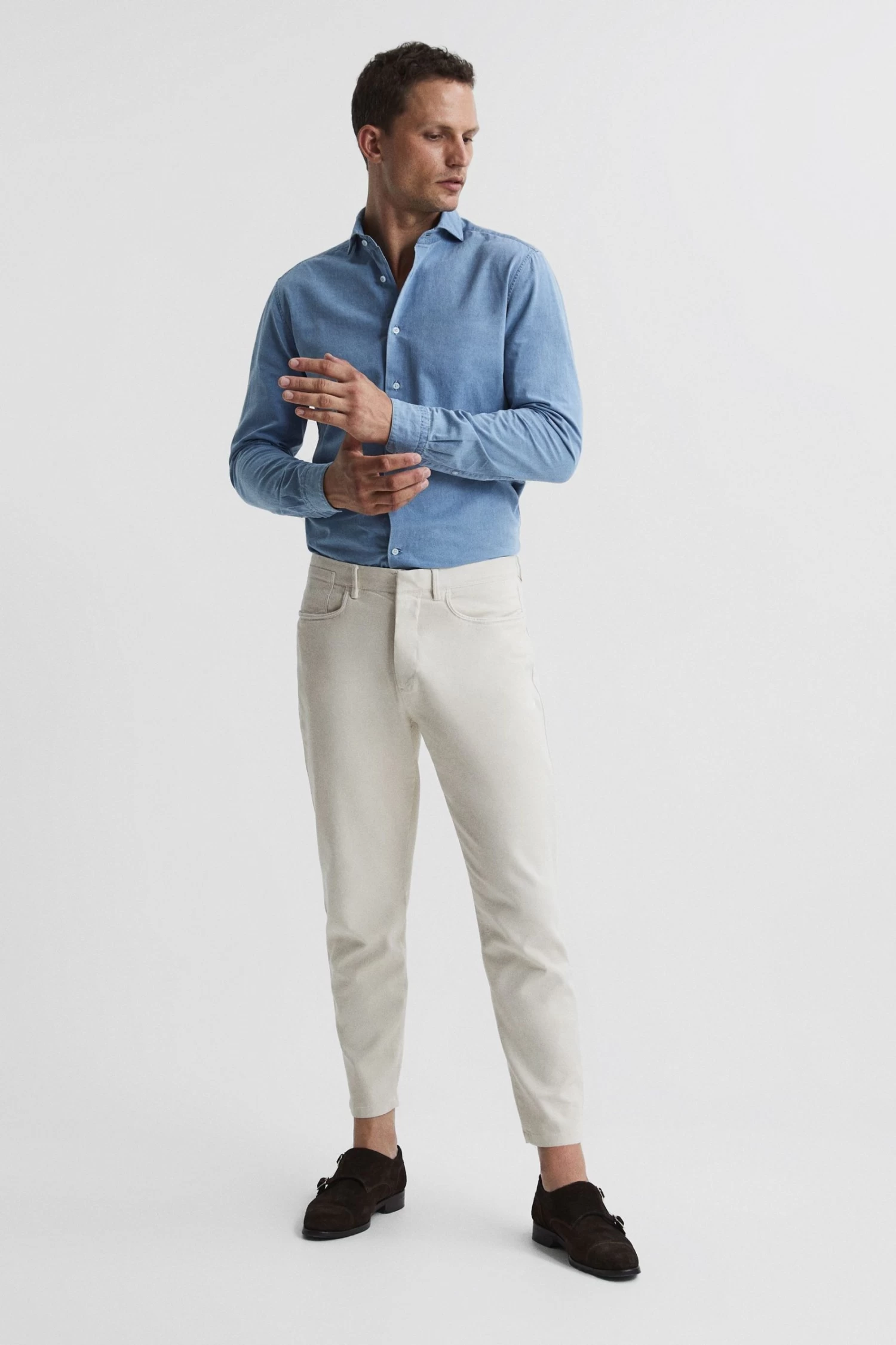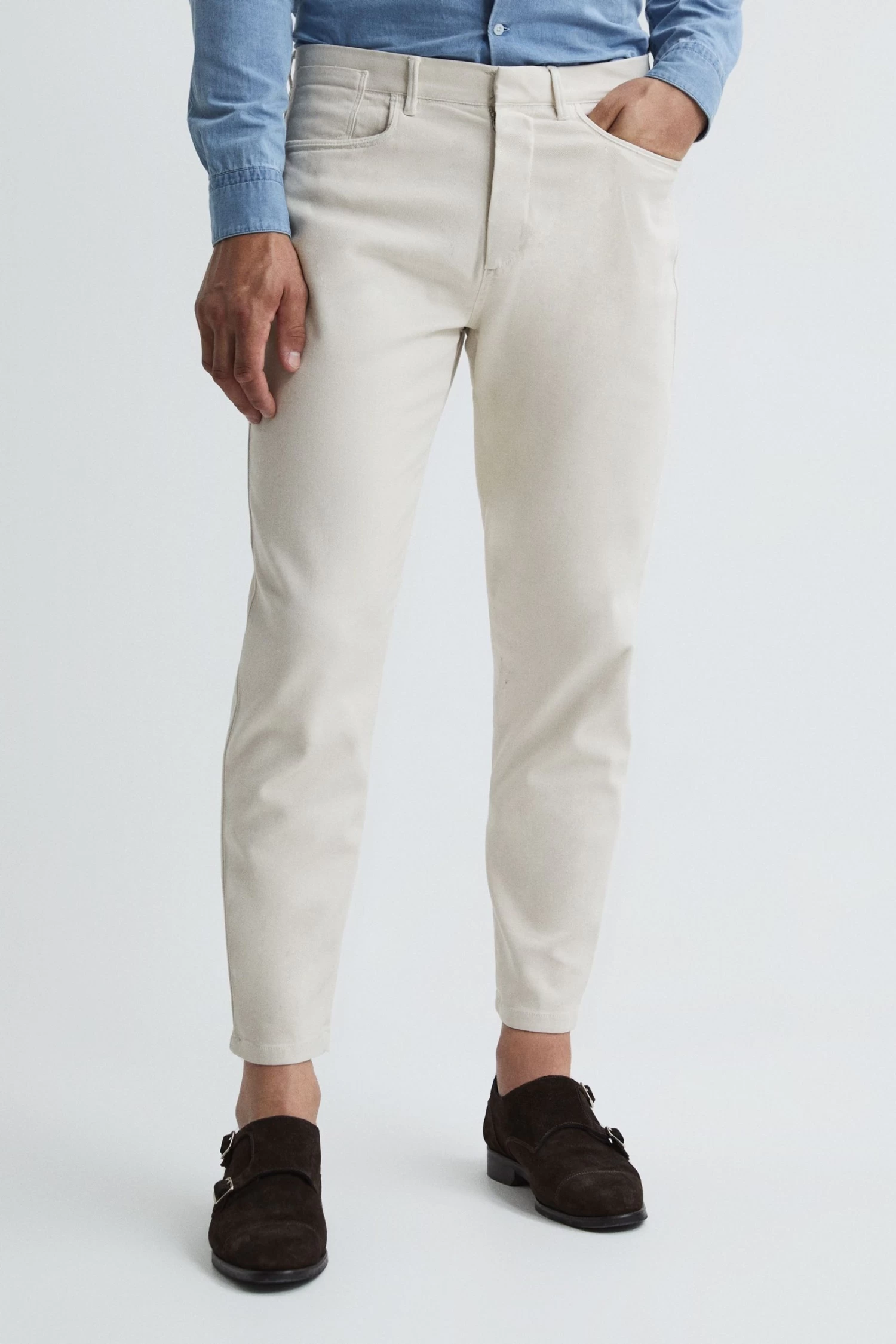 The Hammond stylishly update your casual trouser collection, engineered from a cotton blend with a soft brushed finish and hints of stretch, for a comfortable yet durable wear. They sit to a relaxed fit on the legs and taper at the ankle, lending a flattering look. Style them with a shirt or T-shirt, depending on the mood. Stone shade. Zip fly and button closure. Belt loops. Five-pocket design. Relaxed fit Tapered & cropped. Brushed finish.