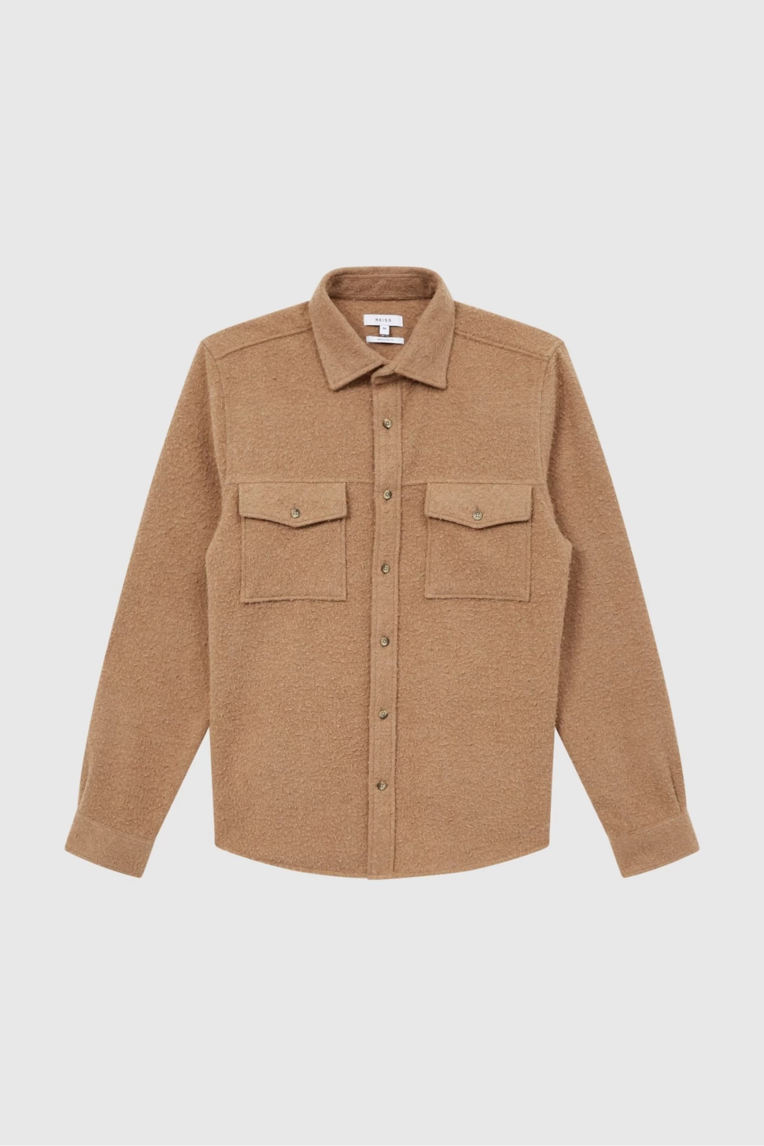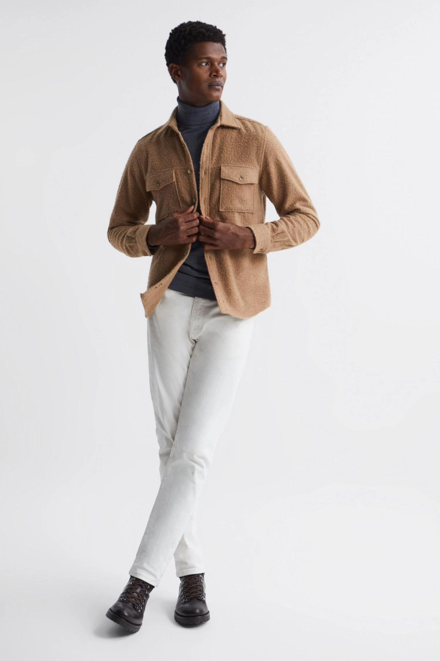 The Kiss overshirt is crafted from a Casentino wool blend for a tactile handle and durability. A point collar, buttoned closure, and buttoned cuffs are featured for formal appeal, and dual chest flap pockets are added for practicality. Pair with trousers and a roll neck to achieve a sophisticated edit. Point collar. Dual chest flap pockets. Buttoned closure. Long sleeves. Buttoned cuffs. Wool blend. Regular fit. The model is wearing a size M. Measurements of model: Height 6ft 2.5″ / 189cm.
