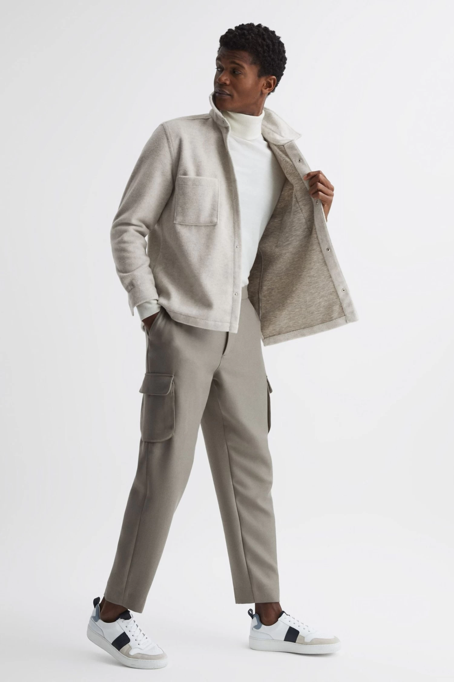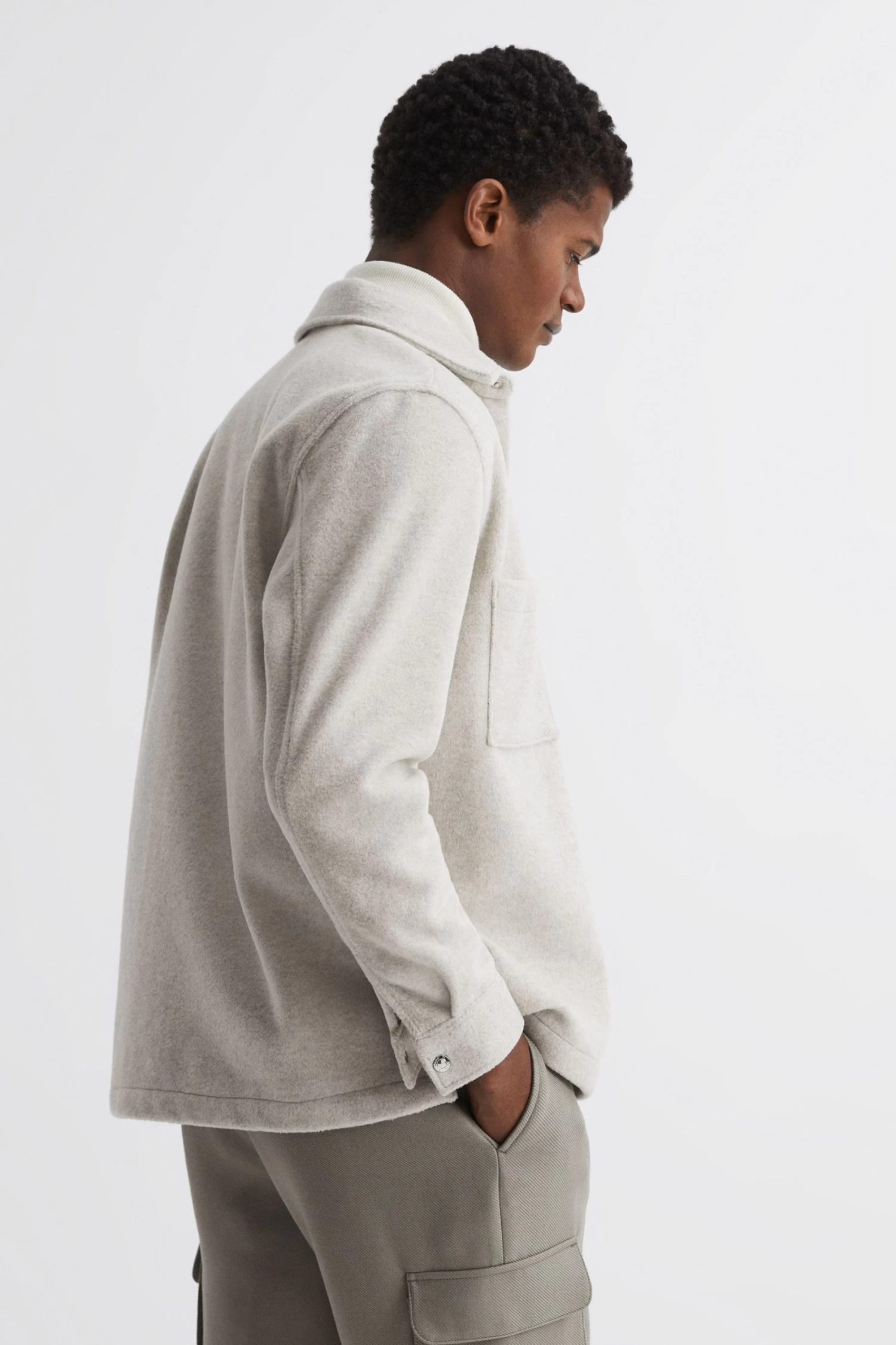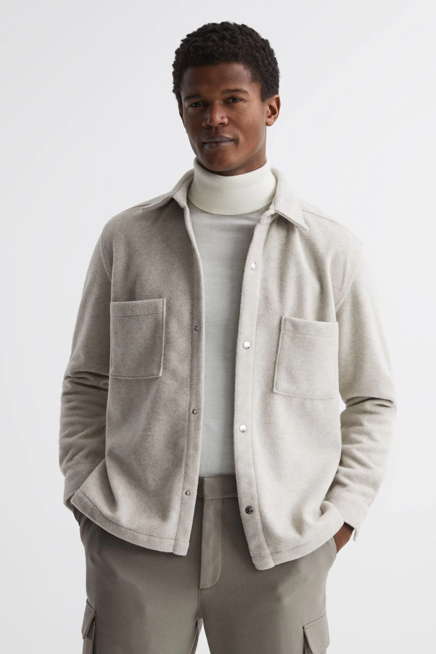 Trans-seasonal climes call for the Loke overshirt. It’s brushed for a textured finish, making it an ideal warming layer. Patch pockets lend a sense of utility. Style with cargo trousers and knitwear to complete your smart-casual look. Point collar. Press-stud placket. Patch pockets. Long sleeves. Press-stud cuffs. Brushed finish. Curved hem. The model is wearing a size M. Measurements of model: Height 6ft 2.5 / 189cm.
