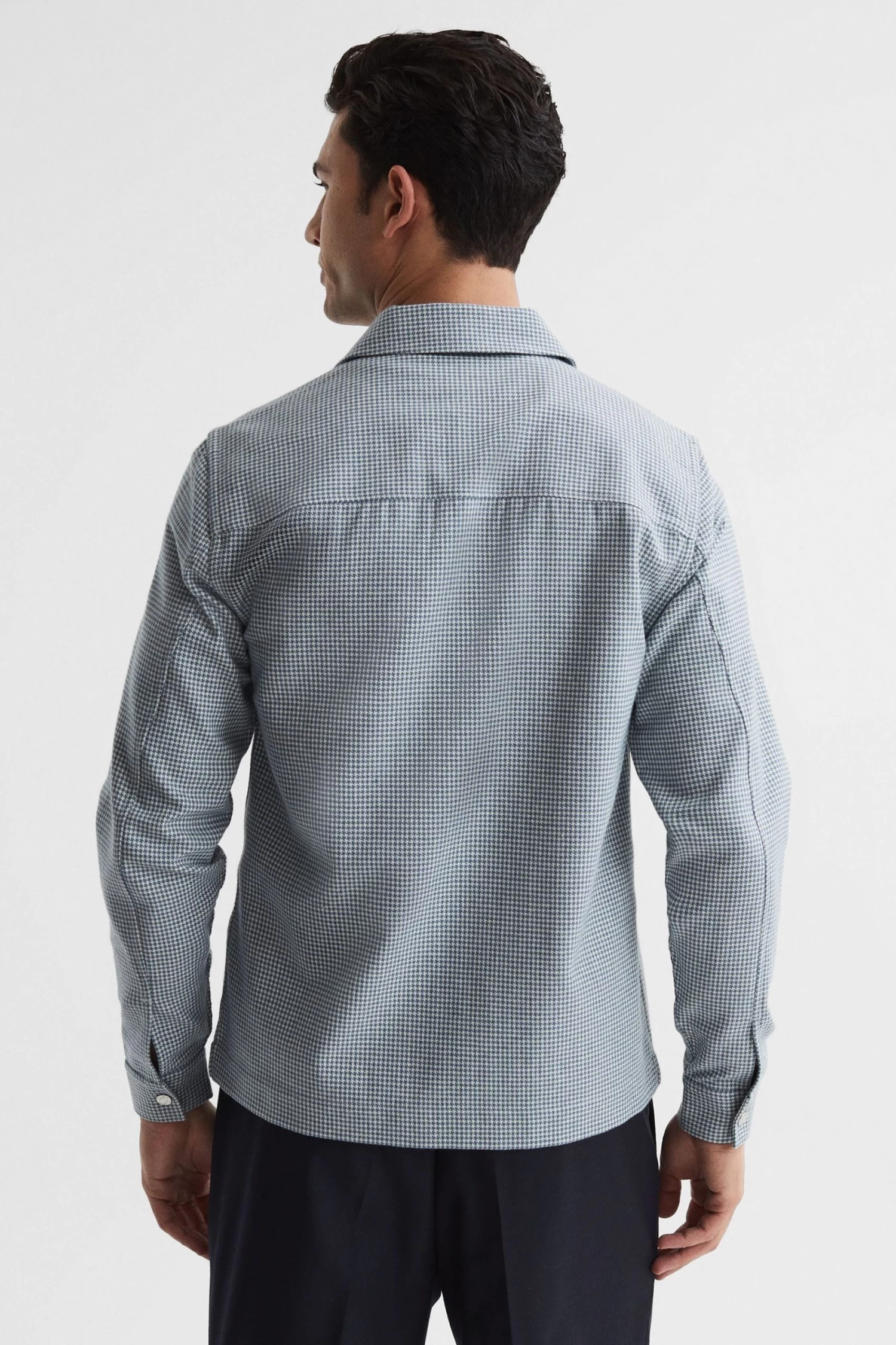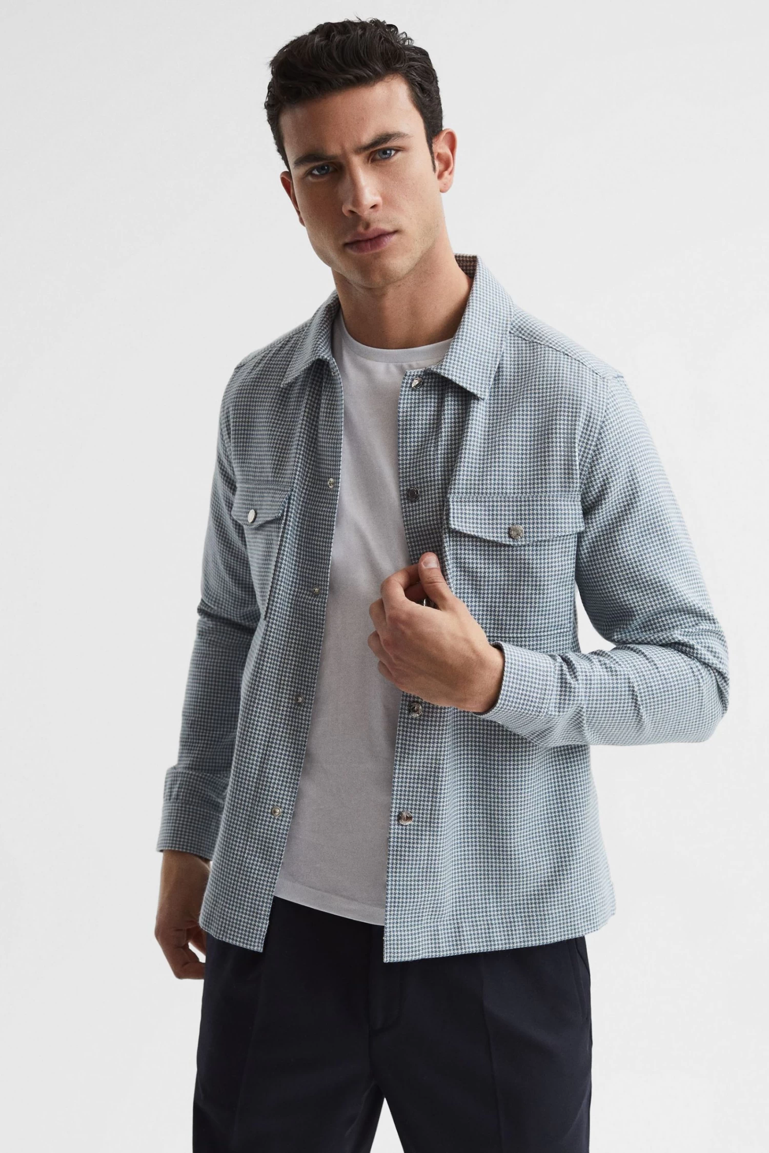The Mixon overshirt is a classic style, made fresh with a contemporary blue and white puppytooth design. Its wool-cotton fabrication lends it comfort and durability. A press-stud closure and chest pockets finish the look. Style over a T-shirt for off-duty days, and add a jacket when the weather cools. Wool-cotton blend. Puppytooth design. Point collar. Press-stud closure. Press-stud flap pockets to chest. Long sleeves. Press-stud cuffs.