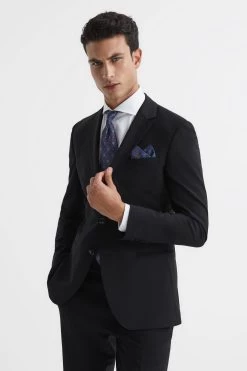 Opt for the Pray blazer, crafted from a wool blend in a navy shade. It’s carefully tailored with padded shoulders, notch lapels and a single-breasted front closure. Wear it with a shirt and the co-ordinating trousers for a smart edit. Notch lapels. Single breasted. Two-button closure. Welt pockets. Buttoned cuffs. Slim fit.