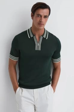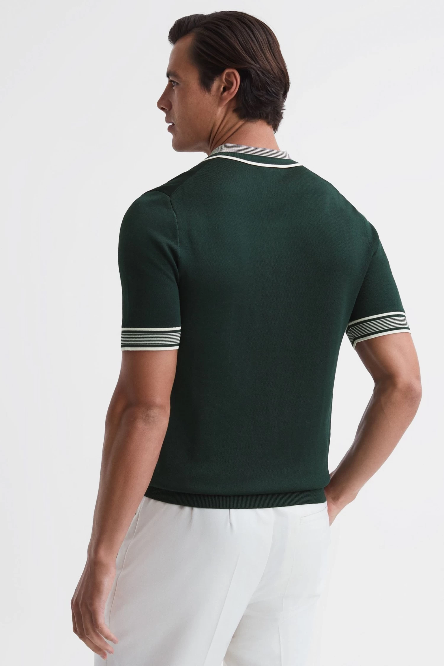 Curate a sportive edit with the Regency polo shirt. It’s crafted from a textured fabrication and decorated with stripe detailing to the collar and sleeves. A half-zip neckline is fitted for easy styling. Pair with the coordinating shorts and trainers or refine the look with chinos. Textured fabrication. Stripe detailing. Half-zip polo neckline. Short sleeves. Silver-tone hardware. The model is wearing a size M Measurements of model: 6ft1 / 187cm.